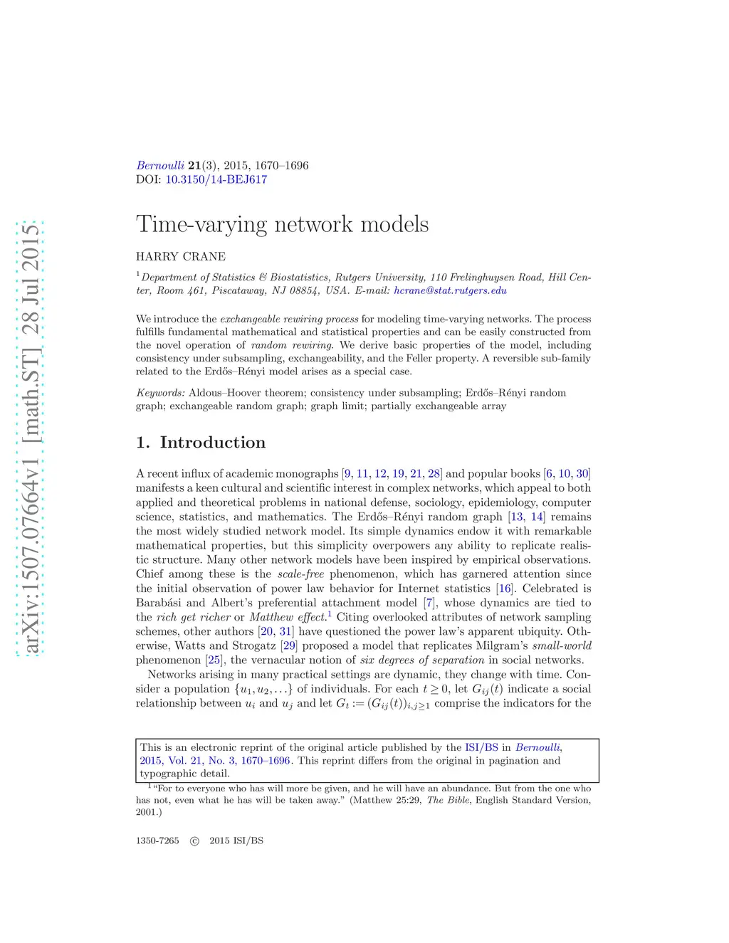 Time-varying network models
