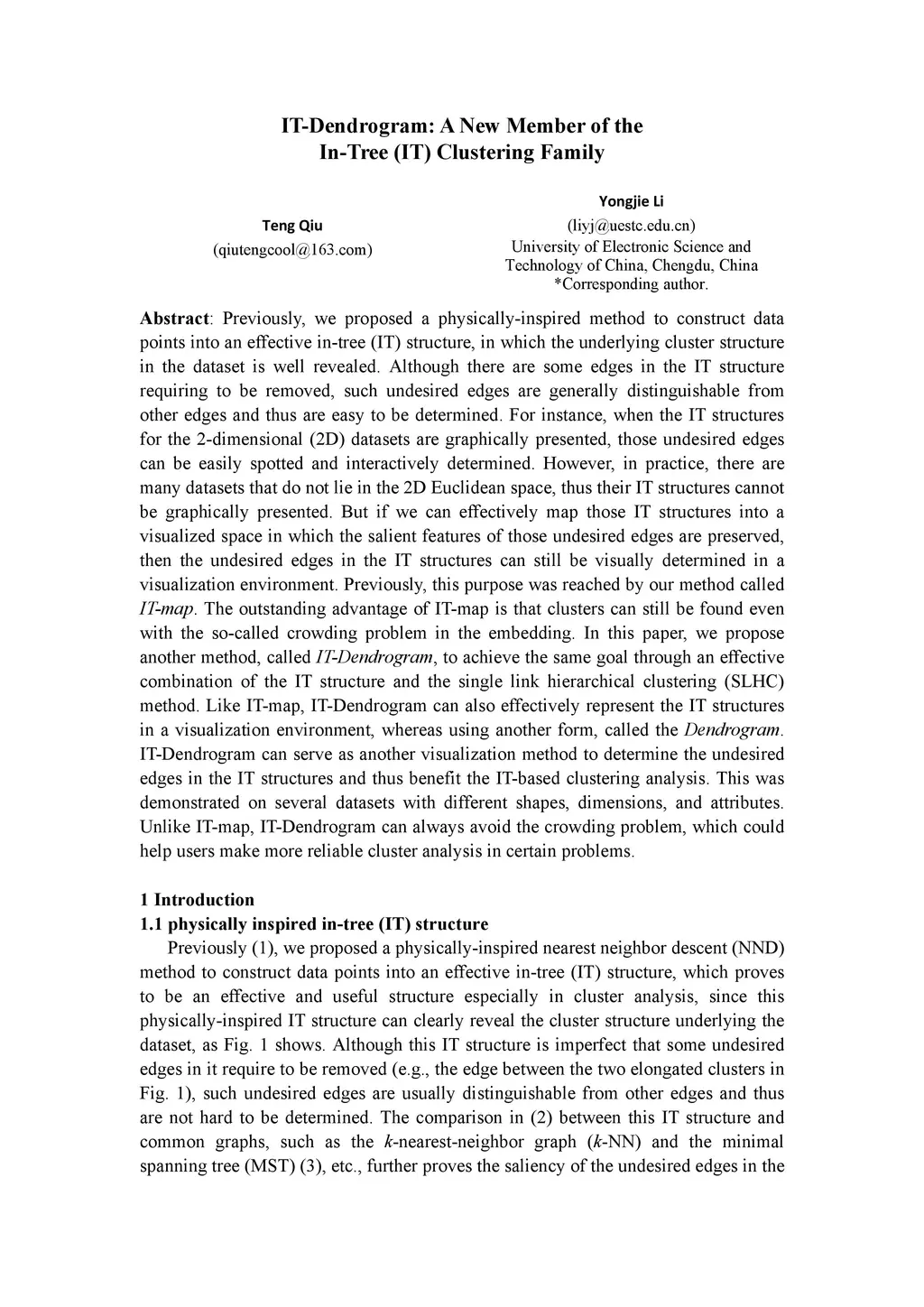 Previously, we proposed a physically-inspired method to construct data points into an effective in-tree (IT) structure, in which the underlying cluster structure in the dataset is well revealed. Although there are some edges in the IT structure requiring to be removed, such undesired edges are generally distinguishable from other edges and thus are easy to be determined. For instance, when the IT structures for the 2-dimensional (2D) datasets are graphically presented, those undesired edges can be easily spotted and interactively determined. However, in practice, there are many datasets that do not lie in the 2D Euclidean space, thus their IT structures cannot be graphically presented. But if we can effectively map those IT structures into a visualized space in which the salient features of those undesired edges are preserved, then the undesired edges in the IT structures can still be visually determined in a visualization environment. Previously, this purpose was reached by our method called IT-map. The outstanding advantage of IT-map is that clusters can still be found even with the so-called crowding problem in the embedding. In this paper, we propose another method, called IT-Dendrogram, to achieve the same goal through an effective combination of the IT structure and the single link hierarchical clustering (SLHC) method. Like IT-map, IT-Dendrogram can also effectively represent the IT structures in a visualization environment, whereas using another form, called the Dendrogram. IT-Dendrogram can serve as another visualization method to determine the undesired edges in the IT structures and thus benefit the IT-based clustering analysis. This was demonstrated on several datasets with different shapes, dimensions, and attributes. Unlike IT-map, IT-Dendrogram can always avoid the crowding problem, which could help users make more reliable cluster analysis in certain problems.