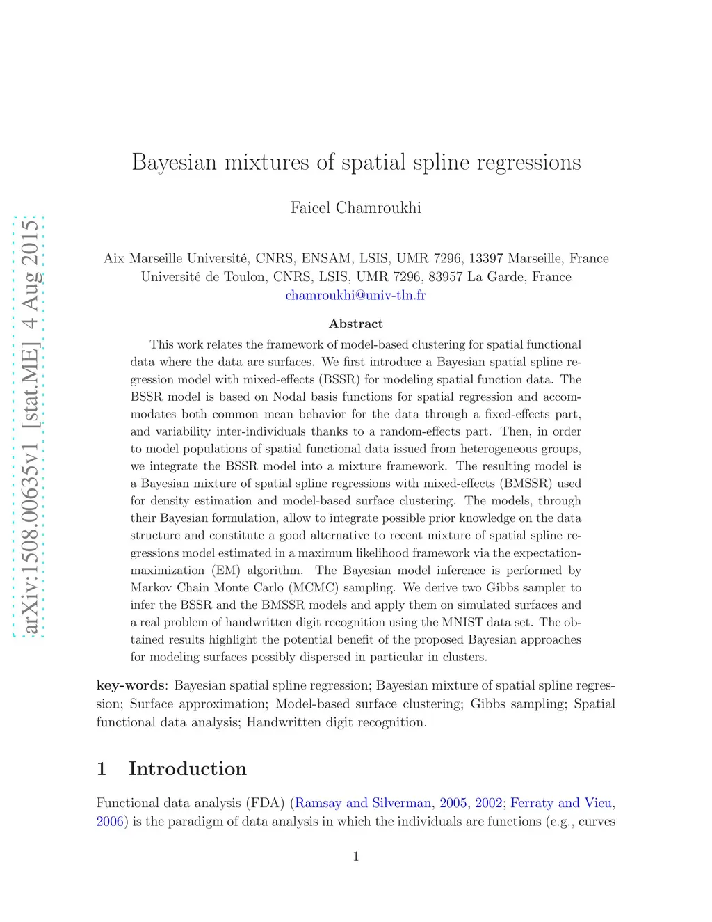 Bayesian mixtures of spatial spline regressions