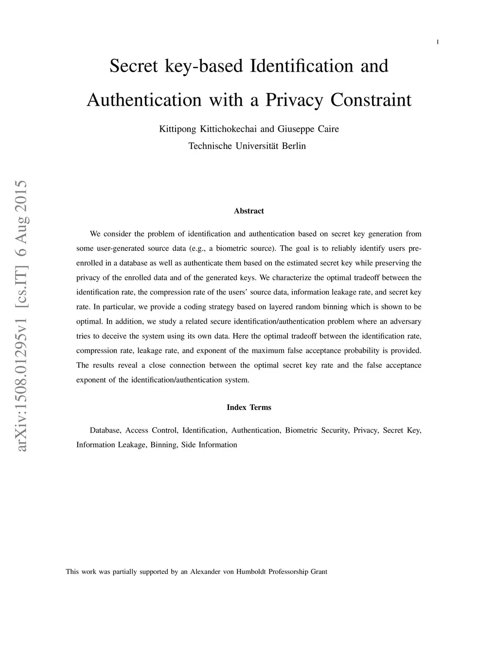 Secret key-based Identification and Authentication with a Privacy