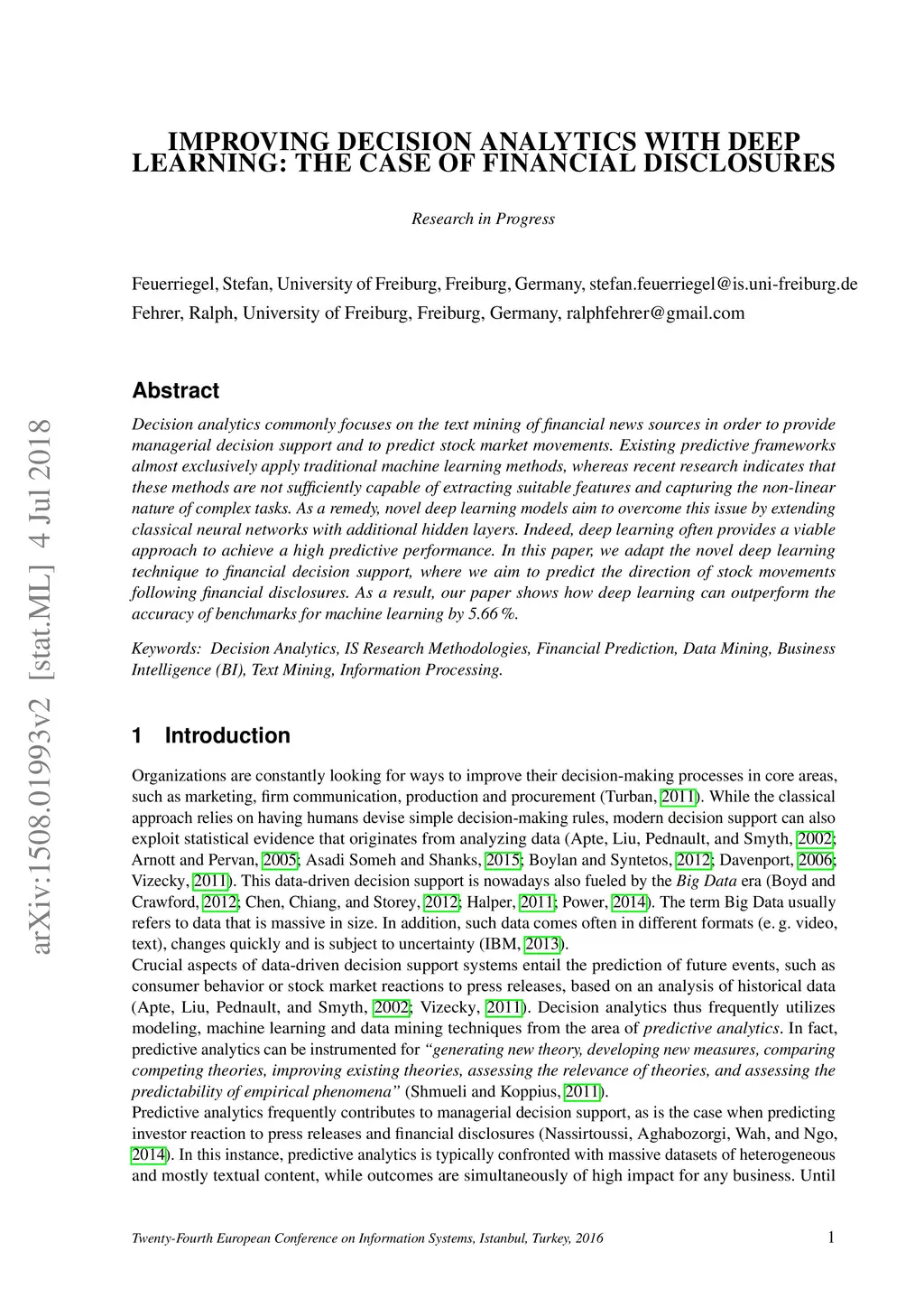 Improving Decision Analytics with Deep Learning: The Case of Financial