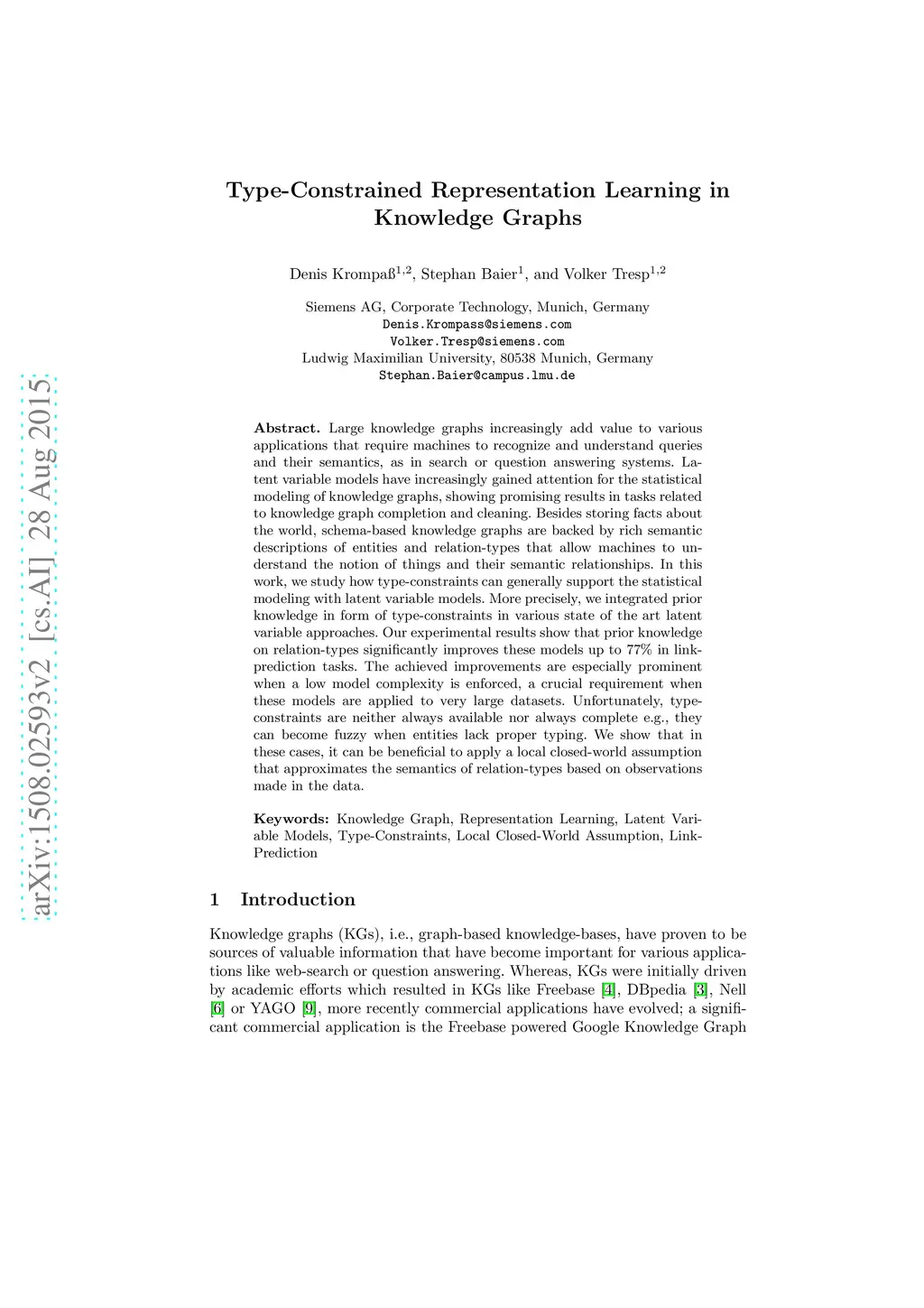 Large knowledge graphs increasingly add value to various applications that require machines to recognize and understand queries and their semantics, as in search or question answering systems. Latent variable models have increasingly gained attention for the statistical modeling of knowledge graphs, showing promising results in tasks related to knowledge graph completion and cleaning. Besides storing facts about the world, schema-based knowledge graphs are backed by rich semantic descriptions of entities and relation-types that allow machines to understand the notion of things and their semantic relationships. In this work, we study how type-constraints can generally support the statistical modeling with latent variable models. More precisely, we integrated prior knowledge in form of type-constraints in various state of the art latent variable approaches. Our experimental results show that prior knowledge on relation-types significantly improves these models up to 77% in link-prediction tasks. The achieved improvements are especially prominent when a low model complexity is enforced, a crucial requirement when these models are applied to very large datasets. Unfortunately, type-constraints are neither always available nor always complete e.g., they can become fuzzy when entities lack proper typing. We show that in these cases, it can be beneficial to apply a local closed-world assumption that approximates the semantics of relation-types based on observations made in the data.
