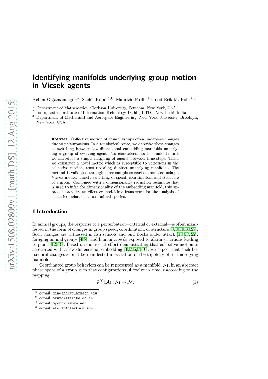 Identifying manifolds underlying group motion in Vicsek agents