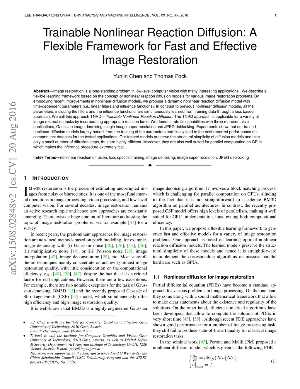 Trainable Nonlinear Reaction Diffusion: A Flexible Framework for Fast