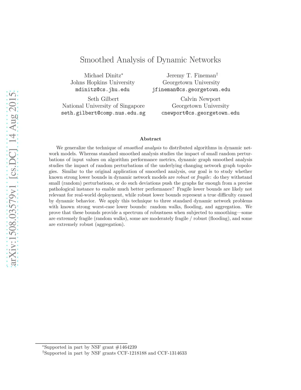 We generalize the technique of smoothed analysis to distributed algorithms in dynamic network models. Whereas standard smoothed analysis studies the impact of small random perturbations of input values on algorithm performance metrics, dynamic graph smoothed analysis studies the impact of random perturbations of the underlying changing network graph topologies. Similar to the original application of smoothed analysis, our goal is to study whether known strong lower bounds in dynamic network models are robust or fragile: do they withstand small (random) perturbations, or do such deviations push the graphs far enough from a precise pathological instance to enable much better performance? Fragile lower bounds are likely not relevant for real-world deployment, while robust lower bounds represent a true difficulty caused by dynamic behavior. We apply this technique to three standard dynamic network problems with known strong worst-case lower bounds: random walks, flooding, and aggregation. We prove that these bounds provide a spectrum of robustness when subjected to smoothing---some are extremely fragile (random walks), some are moderately fragile / robust (flooding), and some are extremely robust (aggregation).