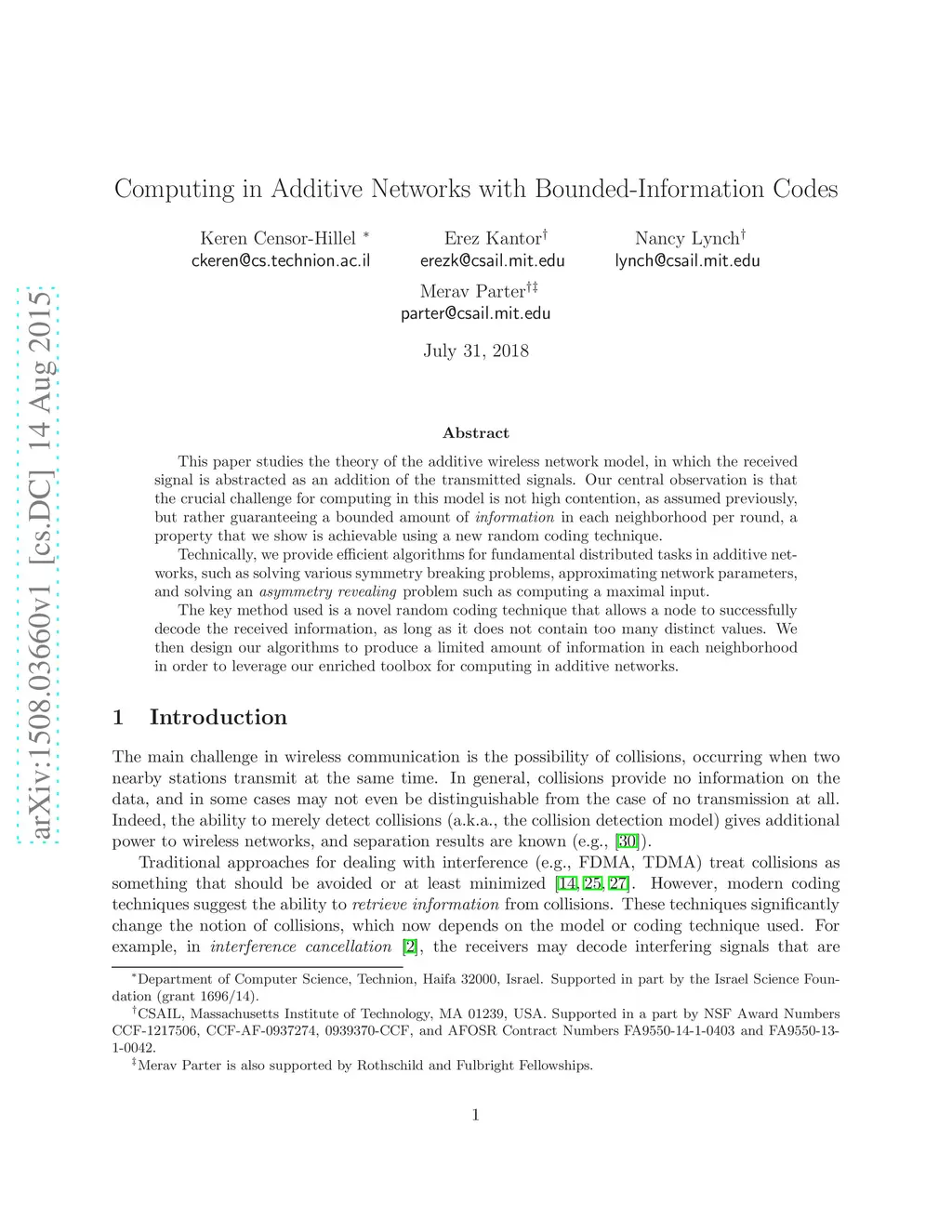 This paper studies the theory of the additive wireless network model, in which the received signal is abstracted as an addition of the transmitted signals. Our central observation is that the crucial challenge for computing in this model is not high contention, as assumed previously, but rather guaranteeing a bounded amount of \emph{information} in each neighborhood per round, a property that we show is achievable using a new random coding technique. Technically, we provide efficient algorithms for fundamental distributed tasks in additive networks, such as solving various symmetry breaking problems, approximating network parameters, and solving an \emph{asymmetry revealing} problem such as computing a maximal input. The key method used is a novel random coding technique that allows a node to successfully decode the received information, as long as it does not contain too many distinct values. We then design our algorithms to produce a limited amount of information in each neighborhood in order to leverage our enriched toolbox for computing in additive networks.