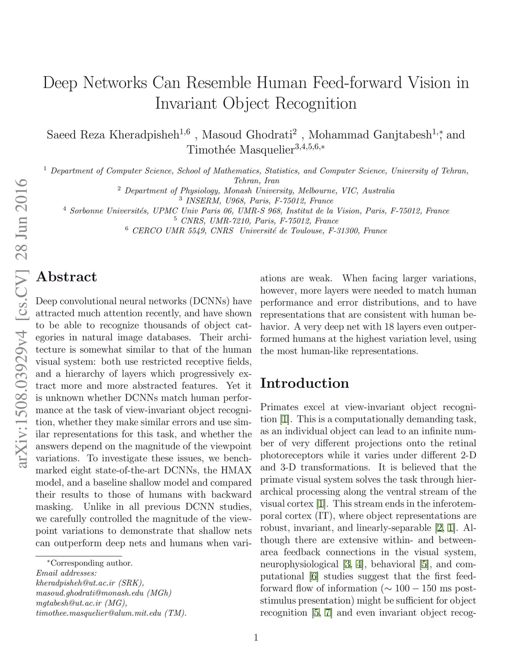 Deep Networks Can Resemble Human Feed-forward Vision in Invariant Object Recognition