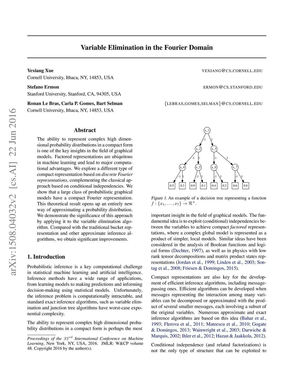 The ability to represent complex high dimensional probability distributions in a compact form is one of the key insights in the field of graphical models. Factored representations are ubiquitous in machine learning and lead to major computational advantages. We explore a different type of compact representation based on discrete Fourier representations, complementing the classical approach based on conditional independencies. We show that a large class of probabilistic graphical models have a compact Fourier representation. This theoretical result opens up an entirely new way of approximating a probability distribution. We demonstrate the significance of this approach by applying it to the variable elimination algorithm. Compared with the traditional bucket representation and other approximate inference algorithms, we obtain significant improvements.