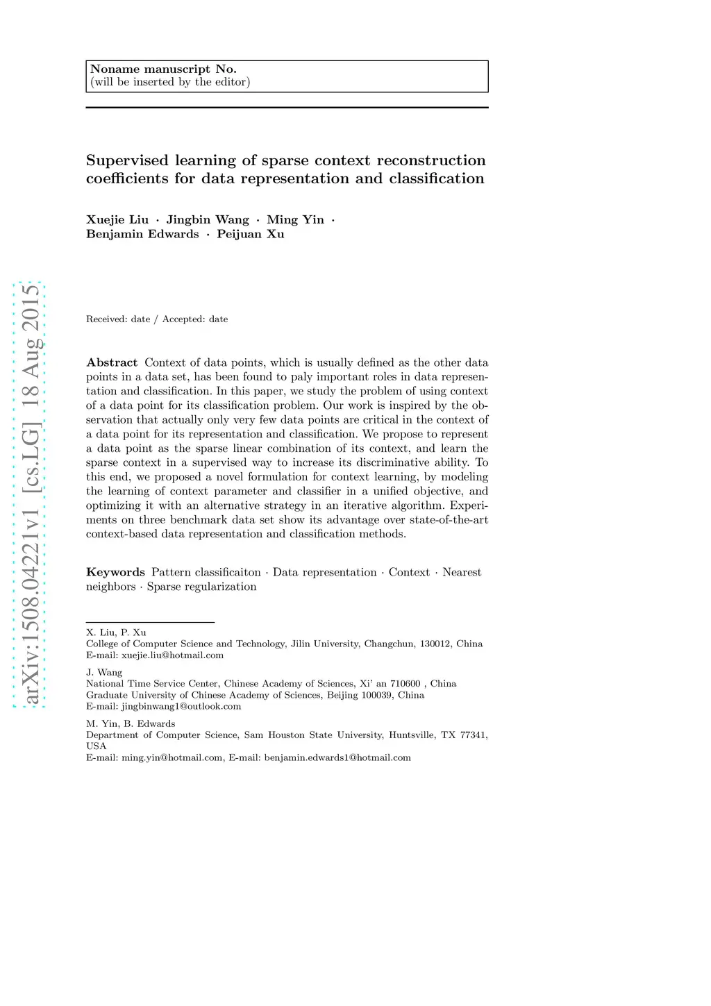 Context of data points, which is usually defined as the other data points in a data set, has been found to play important roles in data representation and classification. In this paper, we study the problem of using context of a data point for its classification problem. Our work is inspired by the observation that actually only very few data points are critical in the context of a data point for its representation and classification. We propose to represent a data point as the sparse linear combination of its context, and learn the sparse context in a supervised way to increase its discriminative ability. To this end, we proposed a novel formulation for context learning, by modeling the learning of context parameter and classifier in a unified objective, and optimizing it with an alternative strategy in an iterative algorithm. Experiments on three benchmark data set show its advantage over state-of-the-art context-based data representation and classification methods.