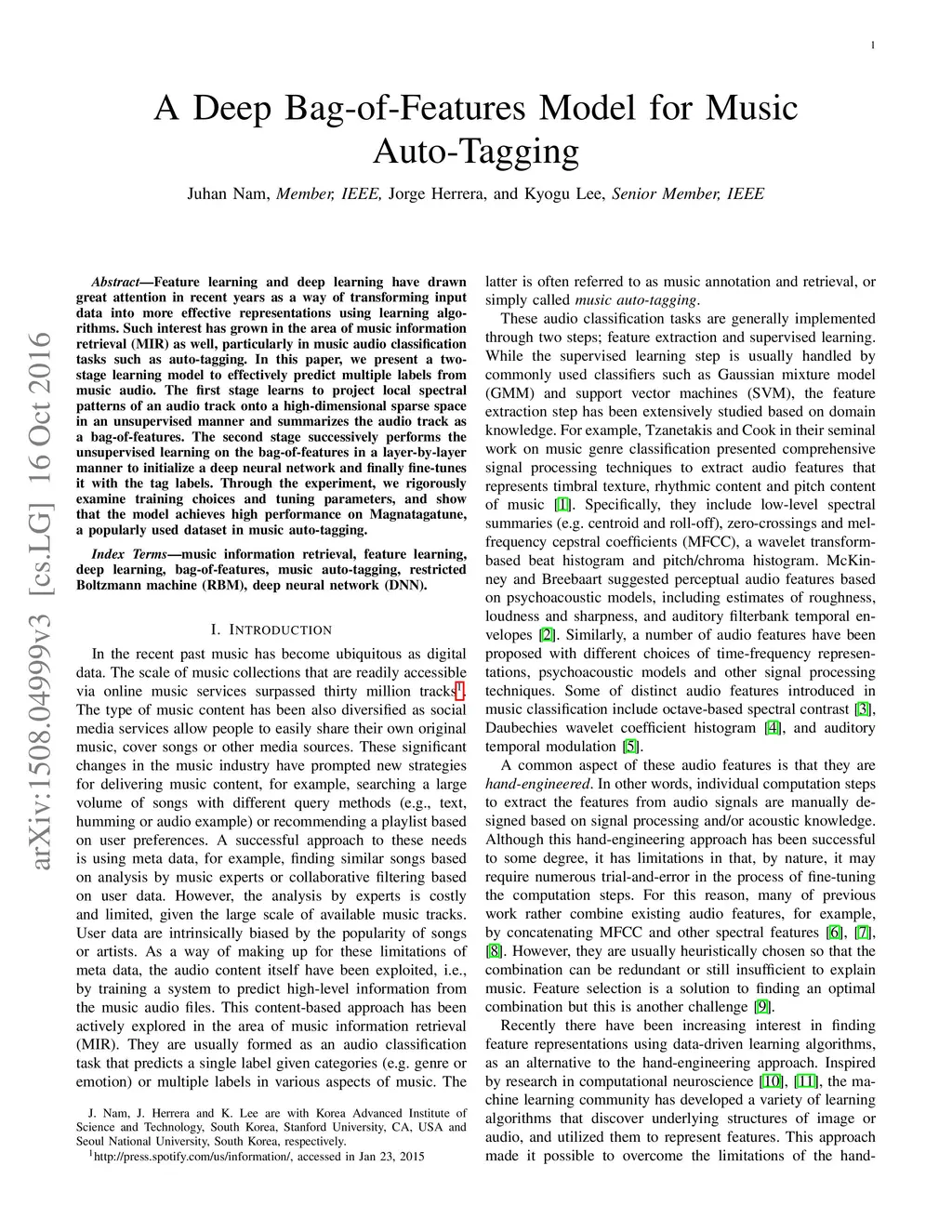 A Deep Bag-of-Features Model for Music Auto-Tagging