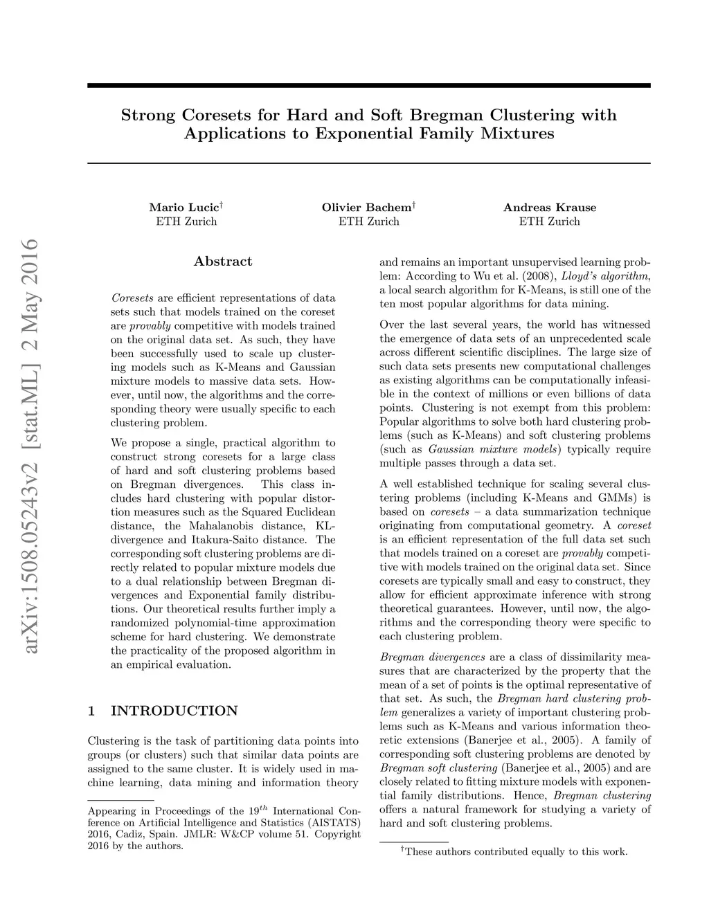 Coresets are efficient representations of data sets such that models trained on the coreset are provably competitive with models trained on the original data set. As such, they have been successfully used to scale up clustering models such as K-Means and Gaussian mixture models to massive data sets. However, until now, the algorithms and the corresponding theory were usually specific to each clustering problem. We propose a single, practical algorithm to construct strong coresets for a large class of hard and soft clustering problems based on Bregman divergences. This class includes hard clustering with popular distortion measures such as the Squared Euclidean distance, the Mahalanobis distance, KL-divergence and Itakura-Saito distance. The corresponding soft clustering problems are directly related to popular mixture models due to a dual relationship between Bregman divergences and Exponential family distributions. Our theoretical results further imply a randomized polynomial-time approximation scheme for hard clustering. We demonstrate the practicality of the proposed algorithm in an empirical evaluation.