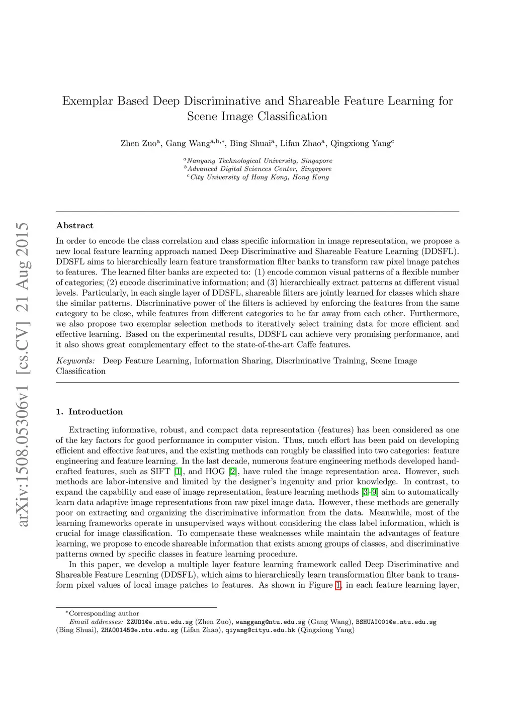 Exemplar Based Deep Discriminative and Shareable Feature Learning for