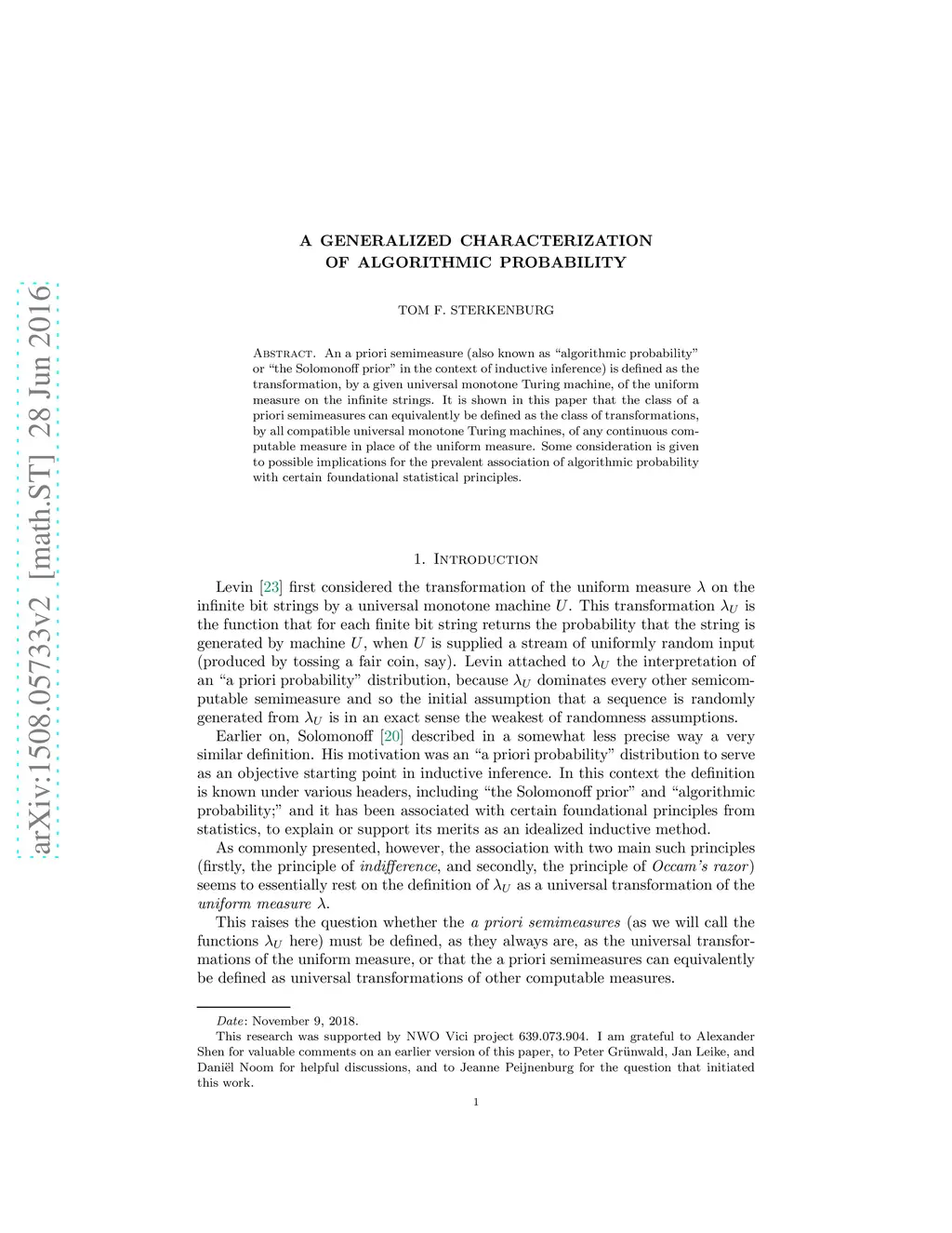 An a priori semimeasure (also known as "algorithmic probability" or "the Solomonoff prior" in the context of inductive inference) is defined as the transformation, by a given universal monotone Turing machine, of the uniform measure on the infinite strings. It is shown in this paper that the class of a priori semimeasures can equivalently be defined as the class of transformations, by all compatible universal monotone Turing machines, of any continuous computable measure in place of the uniform measure. Some consideration is given to possible implications for the prevalent association of algorithmic probability with certain foundational statistical principles.