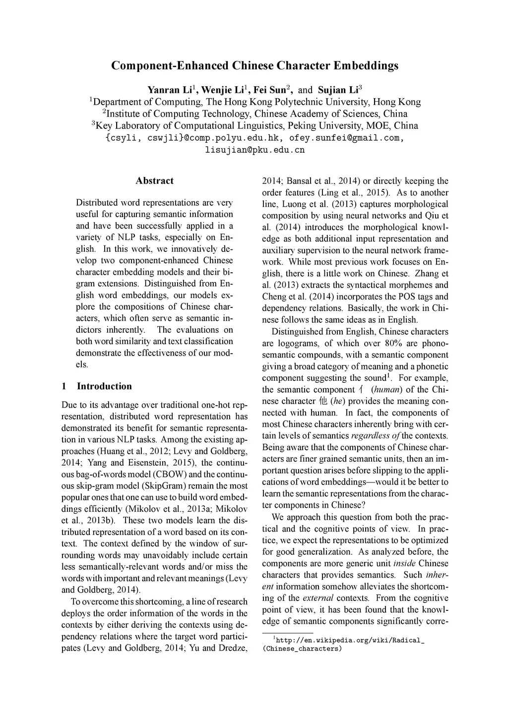 Component-Enhanced Chinese Character Embeddings
