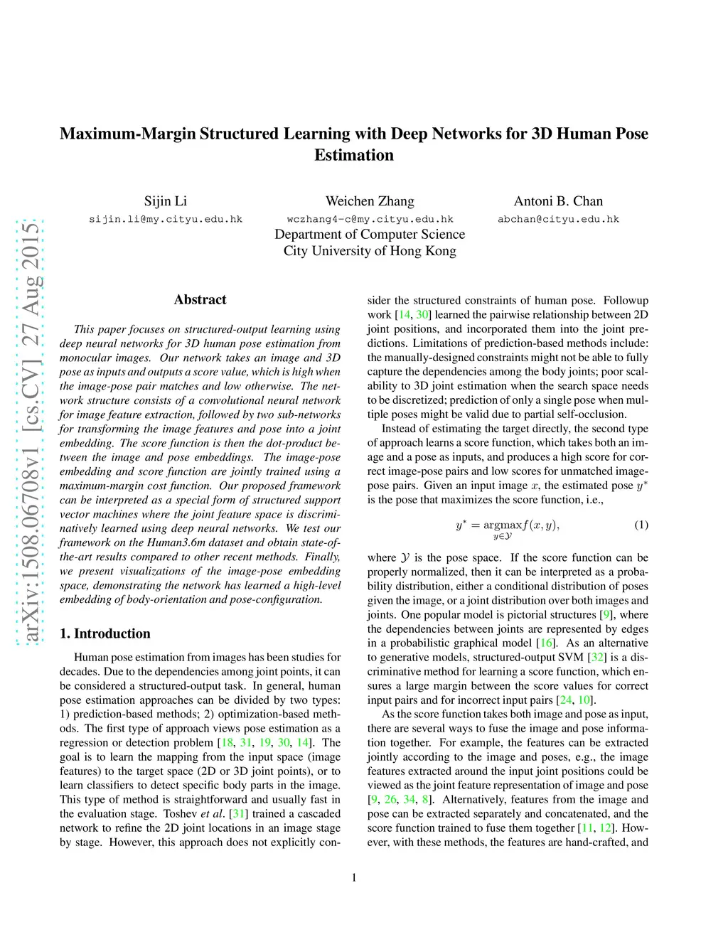 Maximum-Margin Structured Learning with Deep Networks for 3D Human Pose