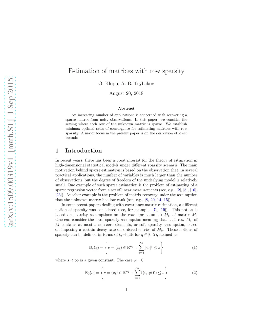 Estimation of matrices with row sparsity