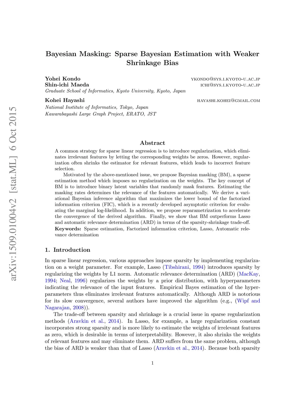Bayesian Masking: Sparse Bayesian Estimation with Weaker Shrinkage Bias
