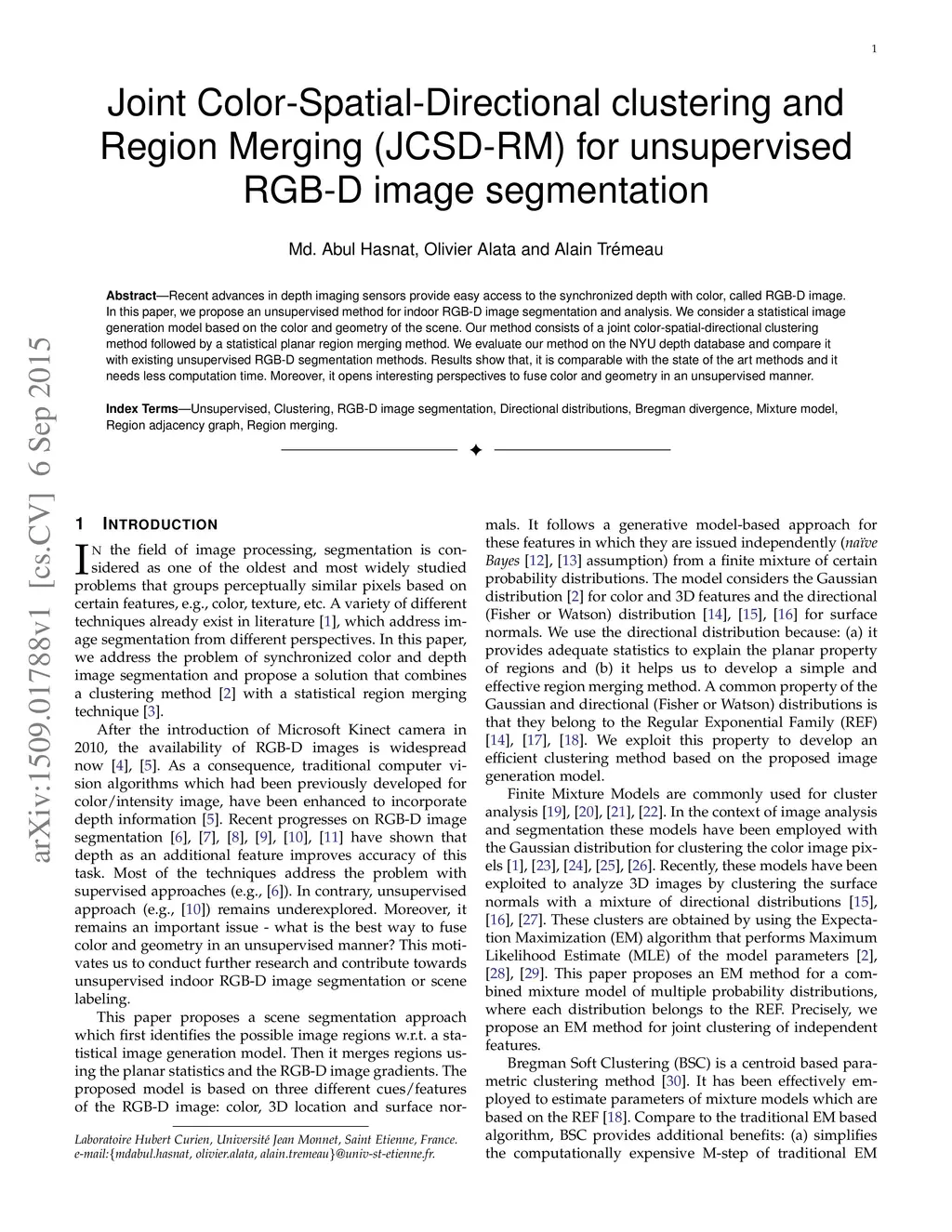 for unsupervised RGB-D image segmentation