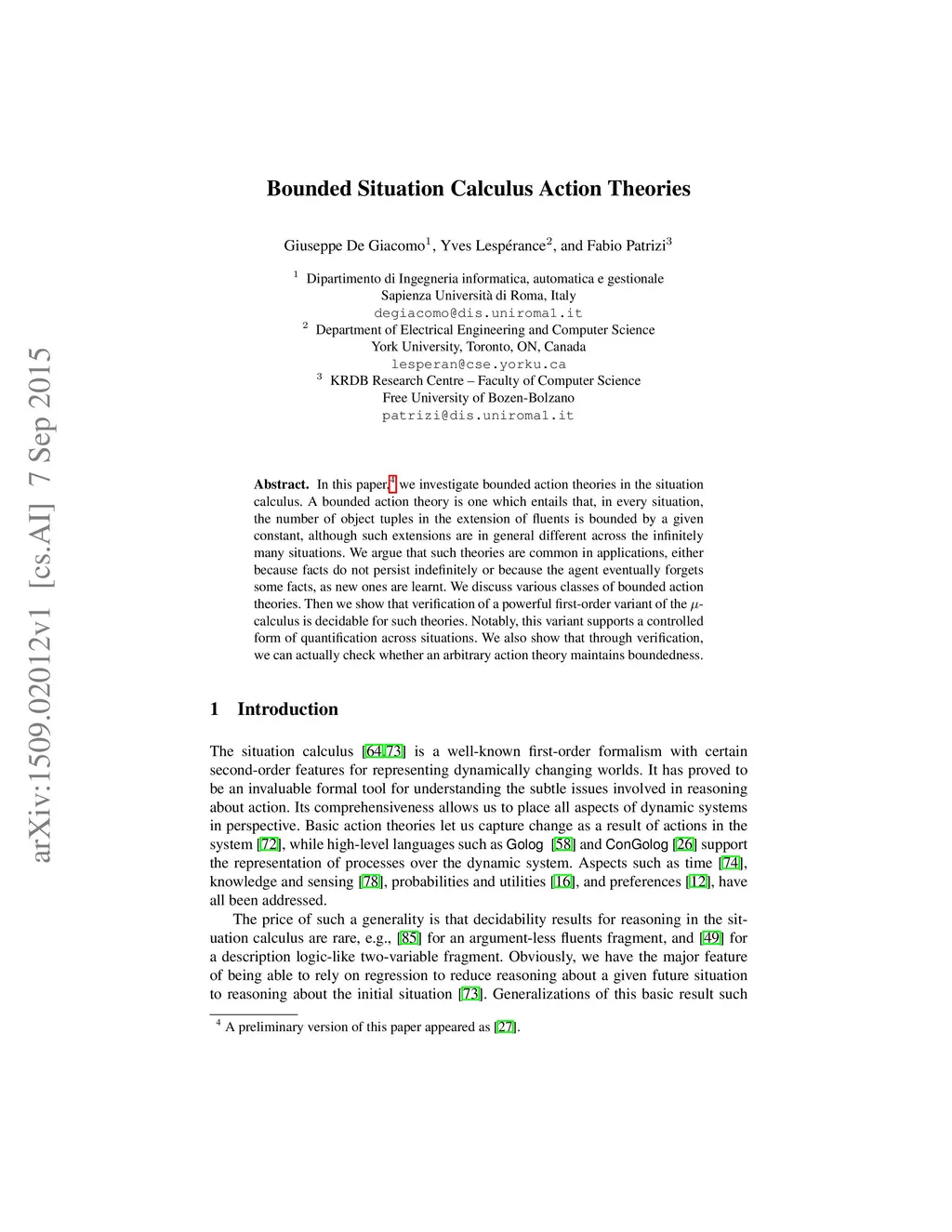 In this paper, we investigate bounded action theories in the situation calculus. A bounded action theory is one which entails that, in every situation, the number of object tuples in the extension of fluents is bounded by a given constant, although such extensions are in general different across the infinitely many situations. We argue that such theories are common in applications, either because facts do not persist indefinitely or because the agent eventually forgets some facts, as new ones are learnt. We discuss various classes of bounded action theories. Then we show that verification of a powerful first-order variant of the mu-calculus is decidable for such theories. Notably, this variant supports a controlled form of quantification across situations. We also show that through verification, we can actually check whether an arbitrary action theory maintains boundedness.