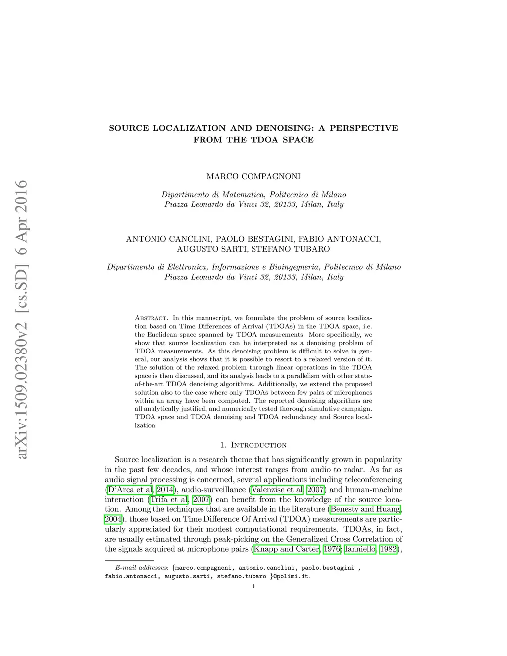 Source localization and denoising: a perspective from the TDOA space