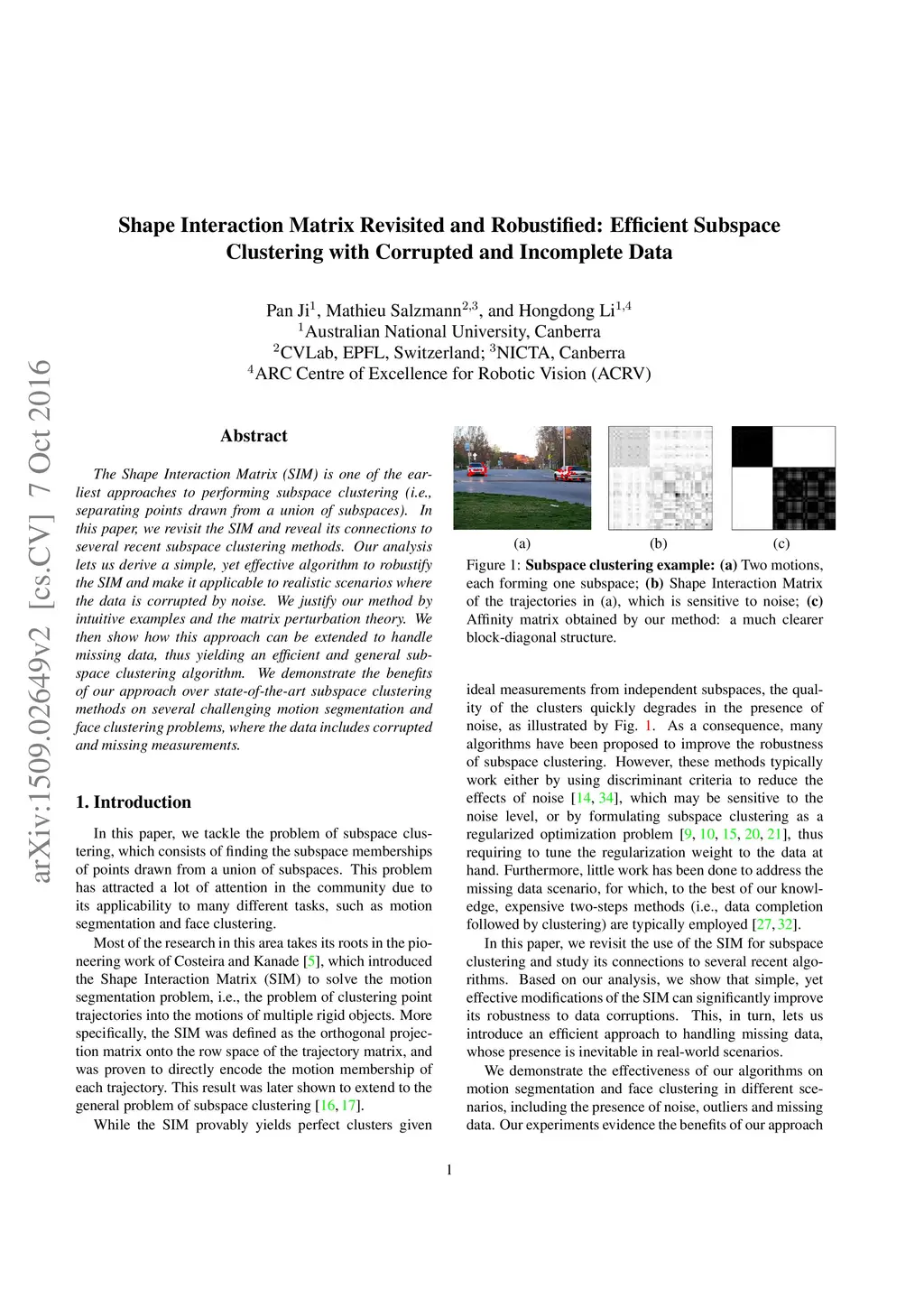 The Shape Interaction Matrix (SIM) is one of the earliest approaches to performing subspace clustering (i.e., separating points drawn from a union of subspaces). In this paper, we revisit the SIM and reveal its connections to several recent subspace clustering methods. Our analysis lets us derive a simple, yet effective algorithm to robustify the SIM and make it applicable to realistic scenarios where the data is corrupted by noise. We justify our method by intuitive examples and the matrix perturbation theory. We then show how this approach can be extended to handle missing data, thus yielding an efficient and general subspace clustering algorithm. We demonstrate the benefits of our approach over state-of-the-art subspace clustering methods on several challenging motion segmentation and face clustering problems, where the data includes corrupted and missing measurements.