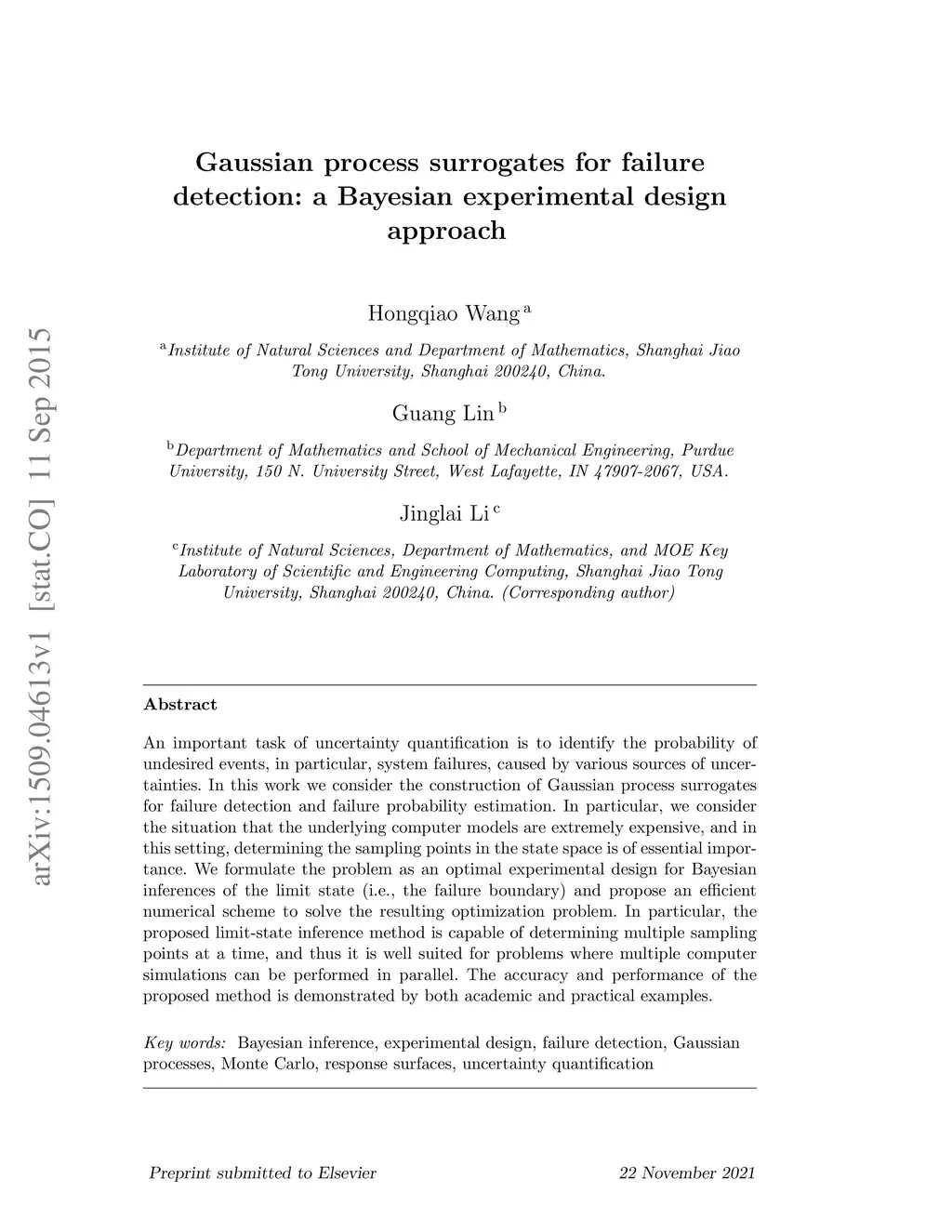 An important task of uncertainty quantification is to identify {the probability of} undesired events, in particular, system failures, caused by various sources of uncertainties. In this work we consider the construction of Gaussian {process} surrogates for failure detection and failure probability estimation. In particular, we consider the situation that the underlying computer models are extremely expensive, and in this setting, determining the sampling points in the state space is of essential importance. We formulate the problem as an optimal experimental design for Bayesian inferences of the limit state (i.e., the failure boundary) and propose an efficient numerical scheme to solve the resulting optimization problem. In particular, the proposed limit-state inference method is capable of determining multiple sampling points at a time, and thus it is well suited for problems where multiple computer simulations can be performed in parallel. The accuracy and performance of the proposed method is demonstrated by both academic and practical examples.