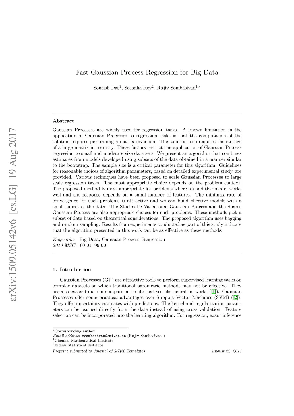 Fast Gaussian Process Regression for Big Data