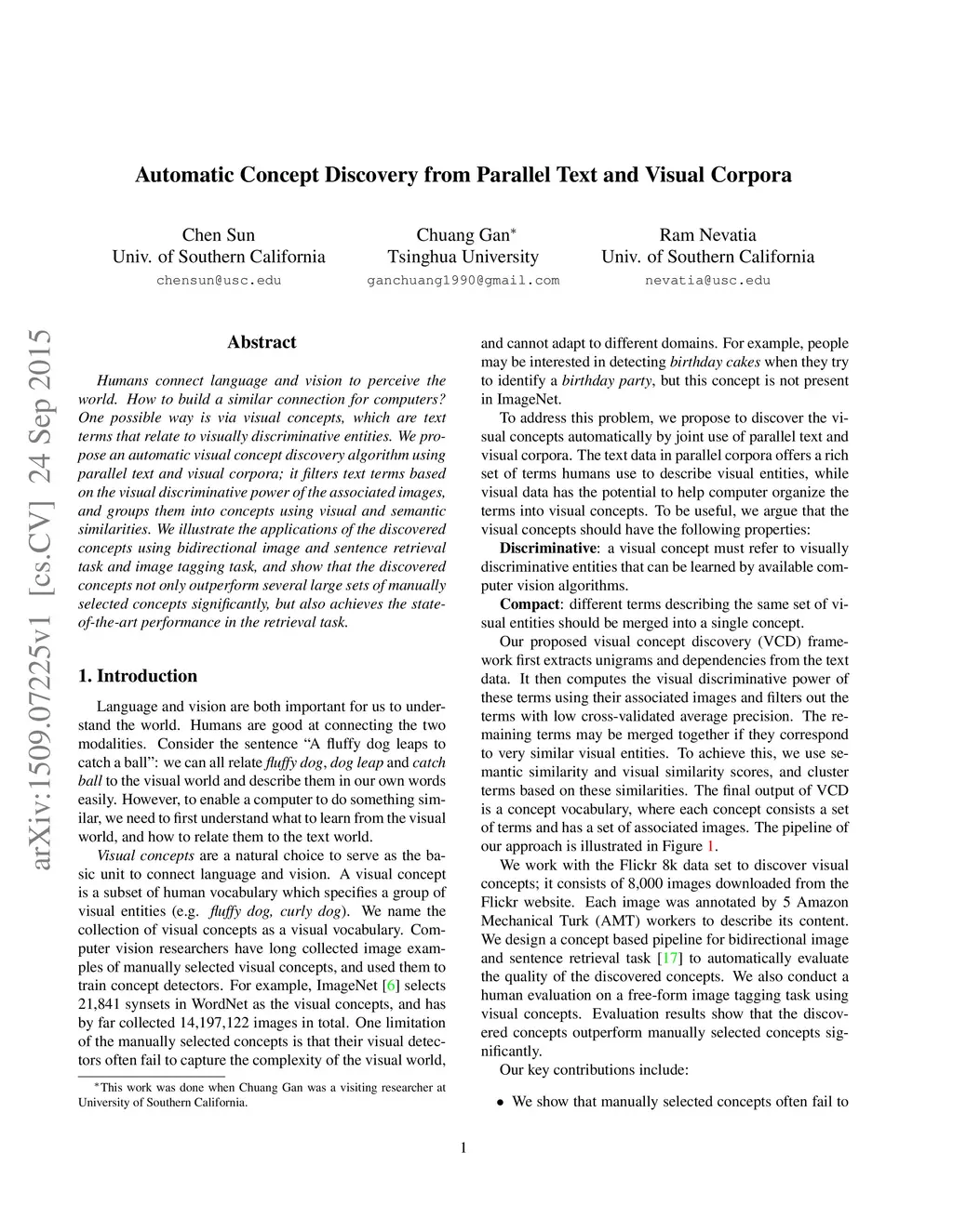 Automatic Concept Discovery from Parallel Text and Visual Corpora