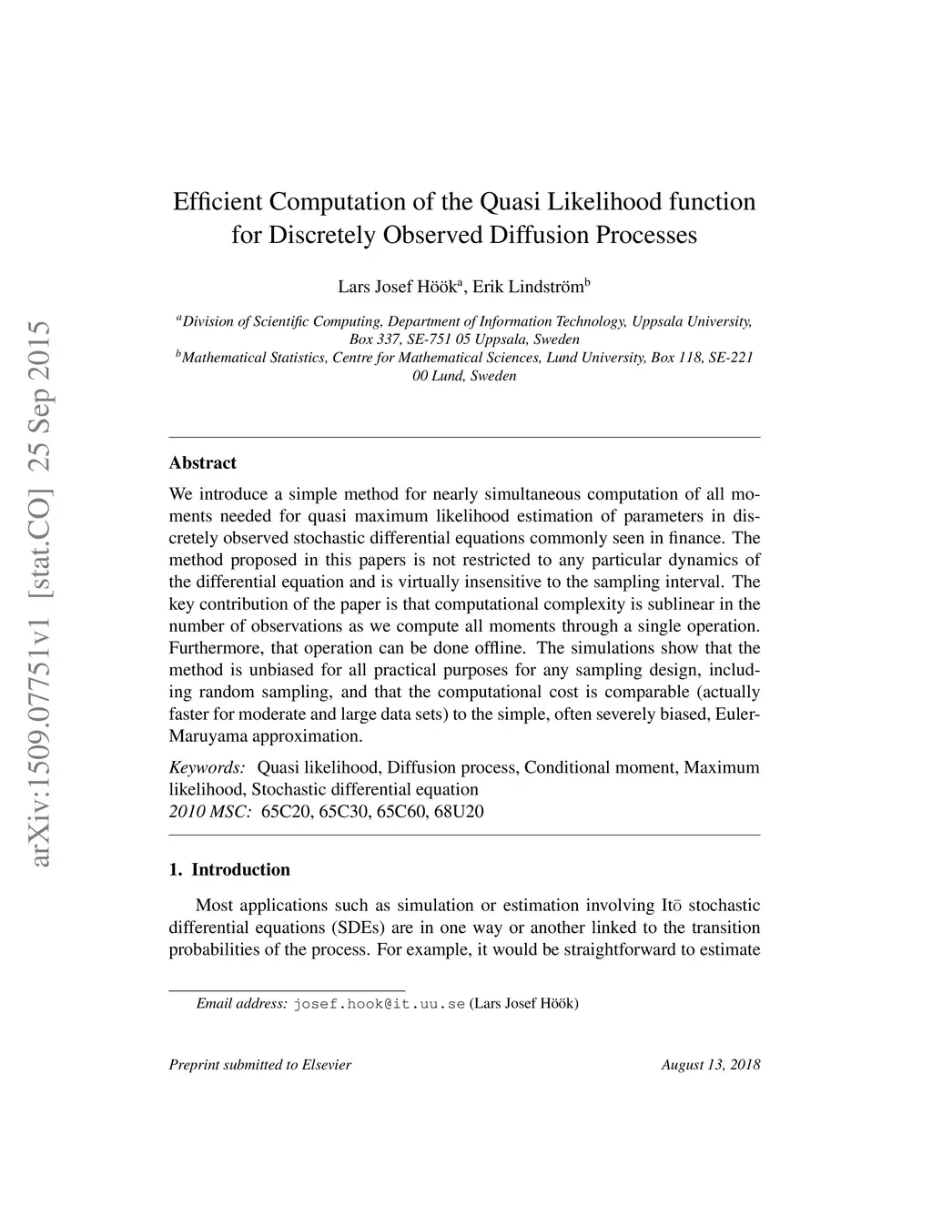 We introduce a simple method for nearly simultaneous computation of all moments needed for quasi maximum likelihood estimation of parameters in discretely observed stochastic differential equations commonly seen in finance. The method proposed in this papers is not restricted to any particular dynamics of the differential equation and is virtually insensitive to the sampling interval. The key contribution of the paper is that computational complexity is sublinear in the number of observations as we compute all moments through a single operation. Furthermore, that operation can be done offline. The simulations show that the method is unbiased for all practical purposes for any sampling design, including random sampling, and that the computational cost is comparable (actually faster for moderate and large data sets) to the simple, often severely biased, Euler-Maruyama approximation.