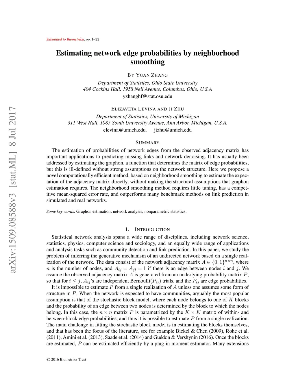 Estimating network edge probabilities by neighborhood smoothing
