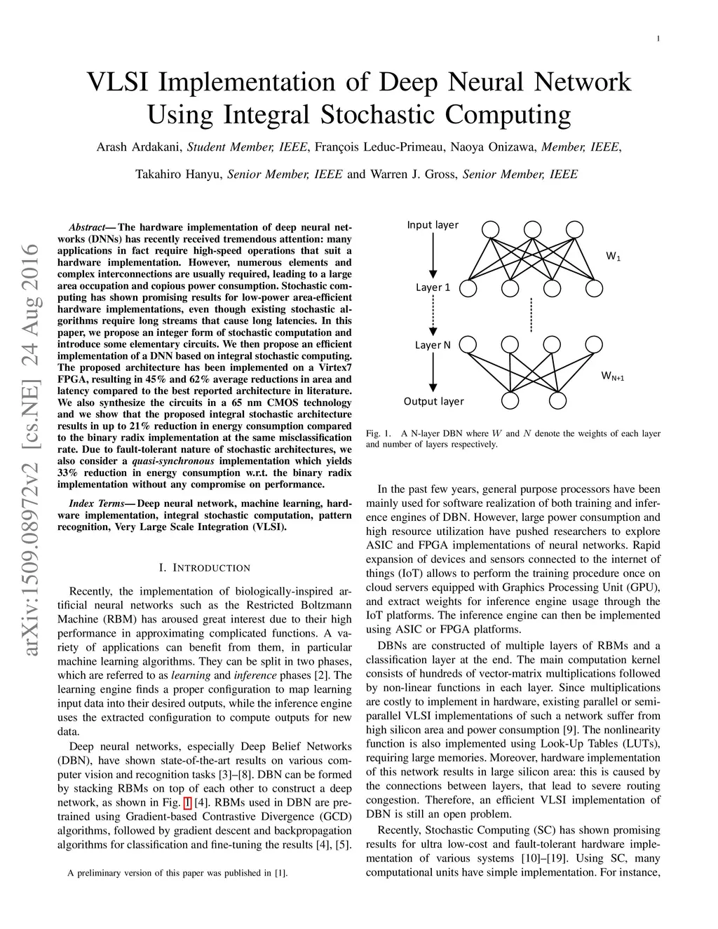 VLSI Implementation of Deep Neural Network Using Integral Stochastic