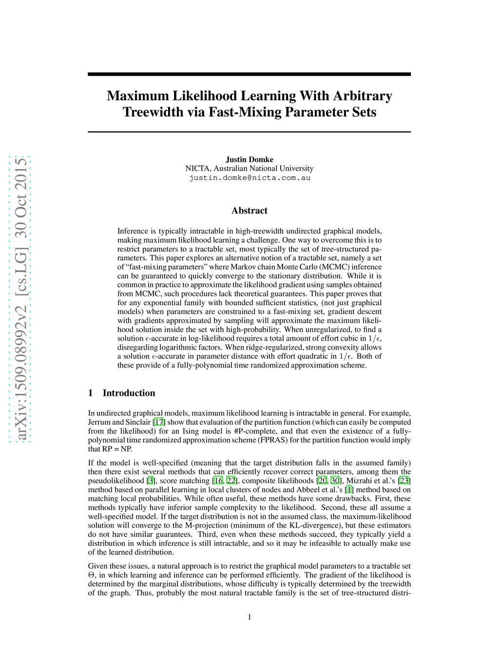 Maximum Likelihood Learning With Arbitrary Treewidth via Fast-Mixing