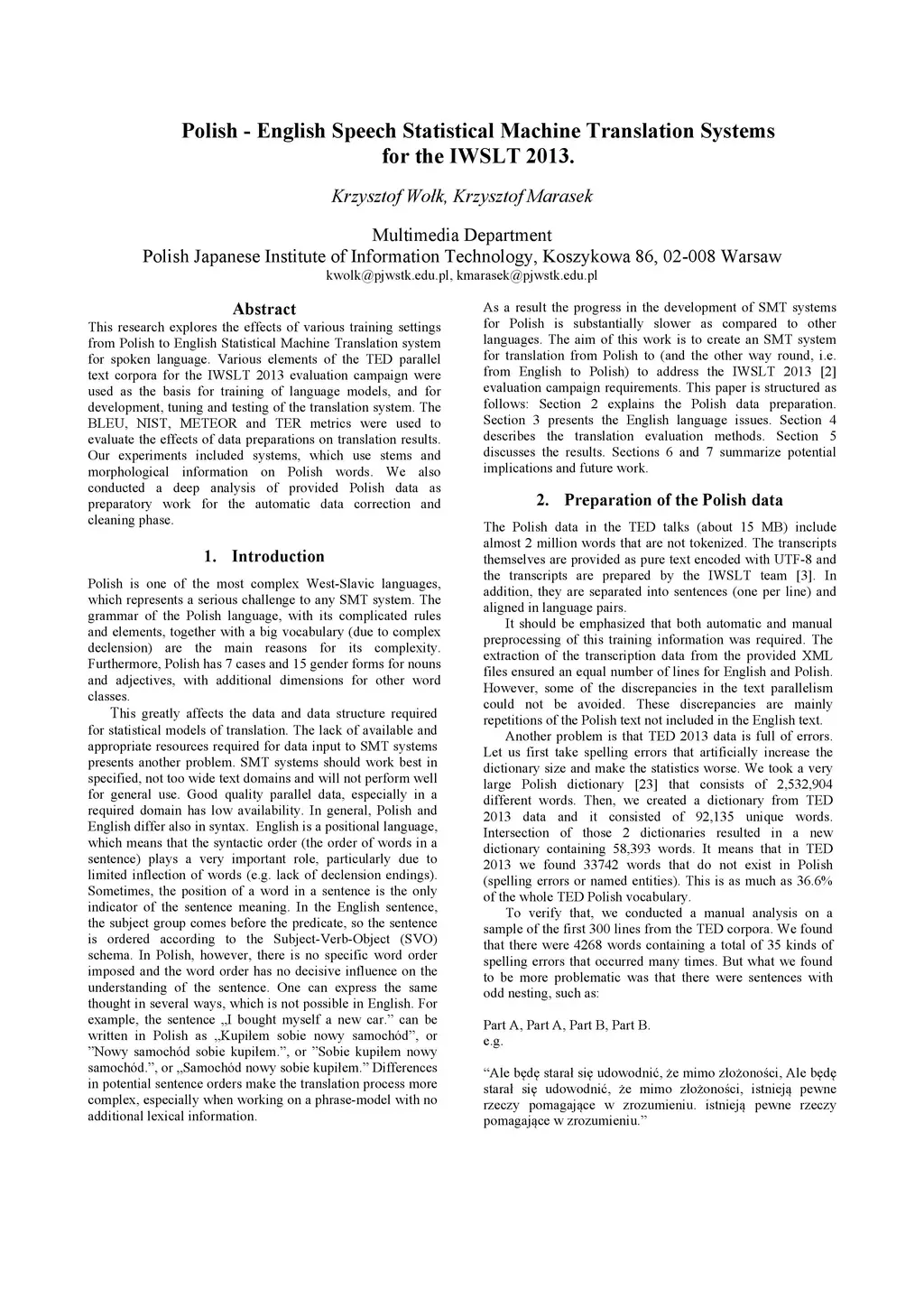 IWSLT 2013