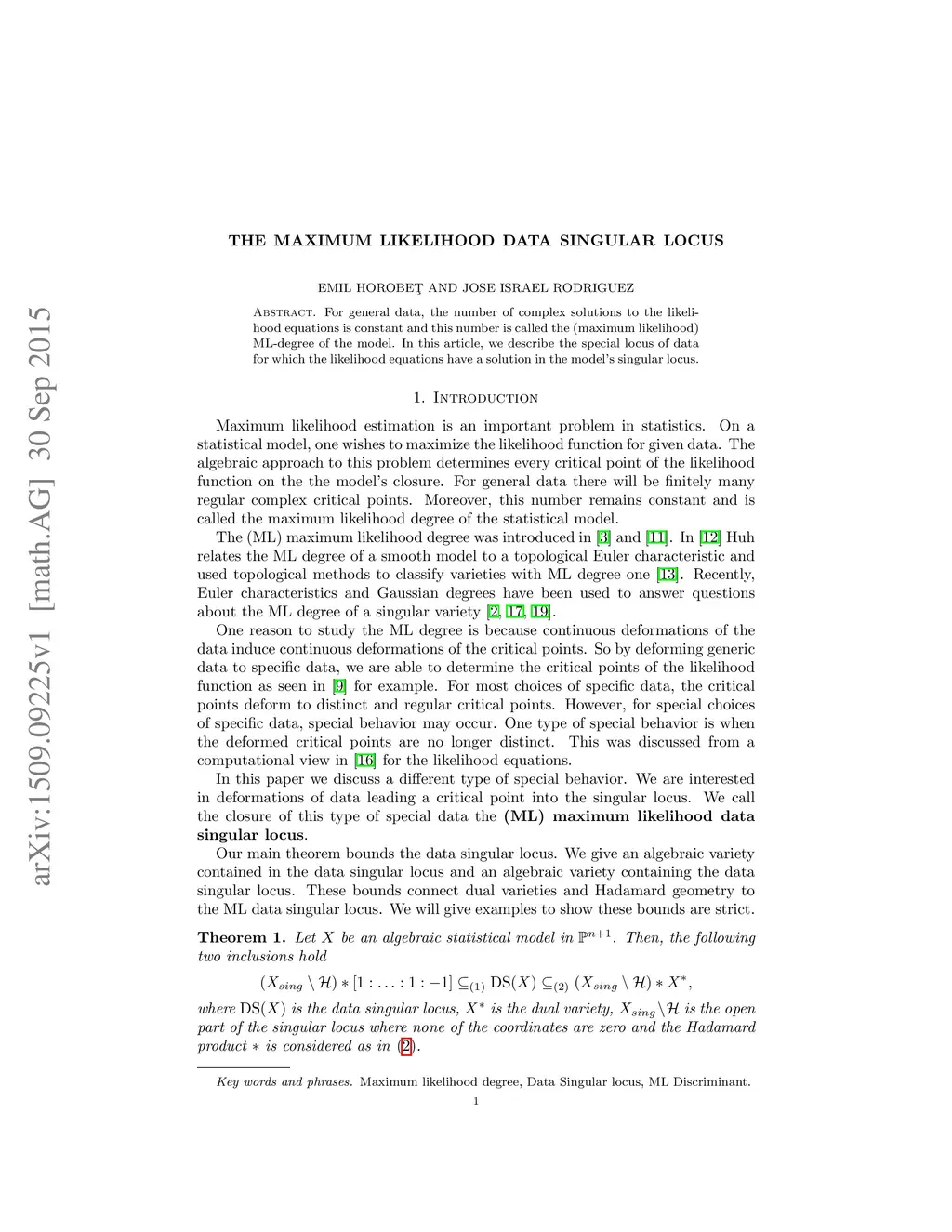 The Maximum Likelihood Data Singular Locus