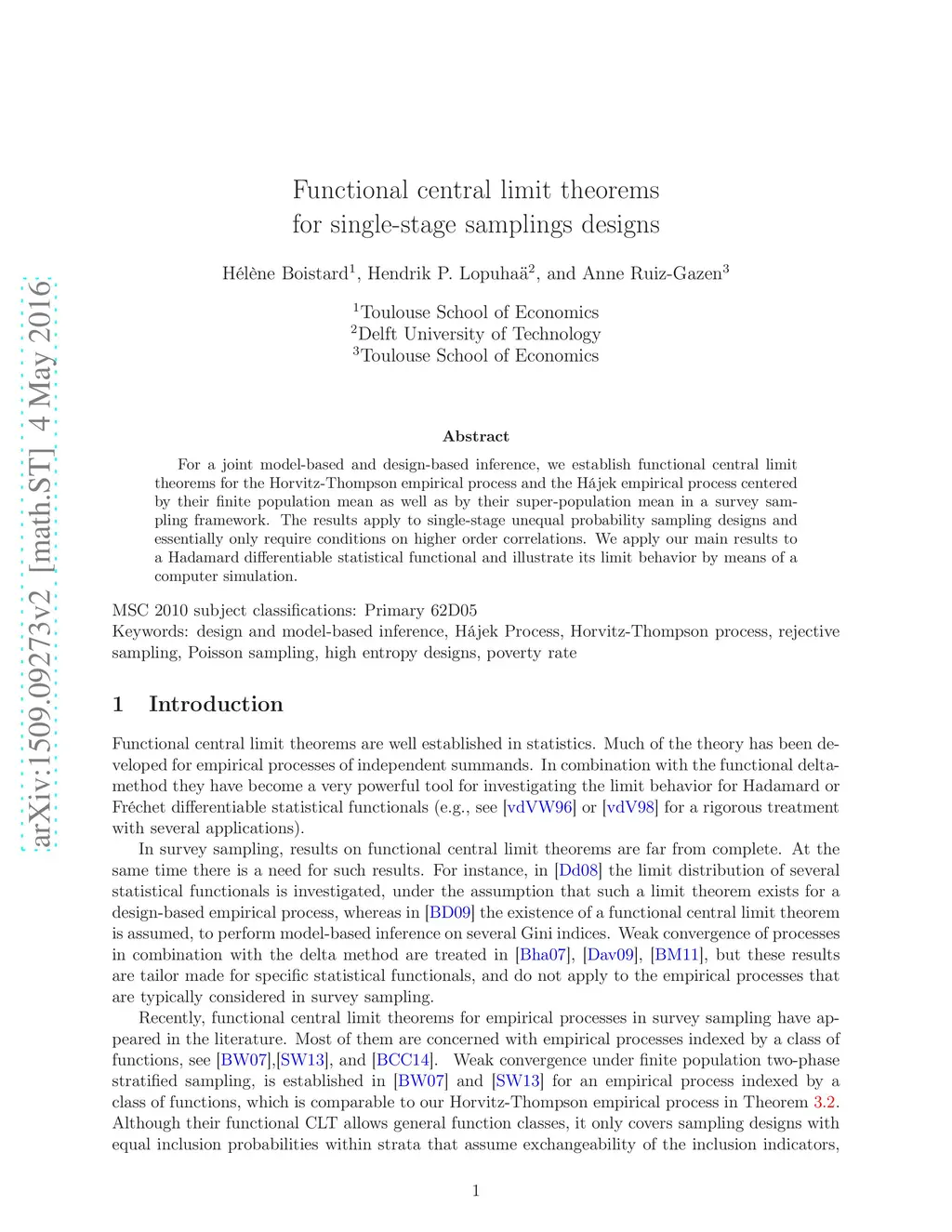 For a joint model-based and design-based inference, we establish functional central limit theorems for the Horvitz-Thompson empirical process and the H\ájek empirical process centered by their finite population mean as well as by their super-population mean in a survey sampling framework. The results apply to single-stage unequal probability sampling designs and essentially only require conditions on higher order correlations. We apply our main results to a Hadamard differentiable statistical functional and illustrate its limit behavior by means of a computer simulation.