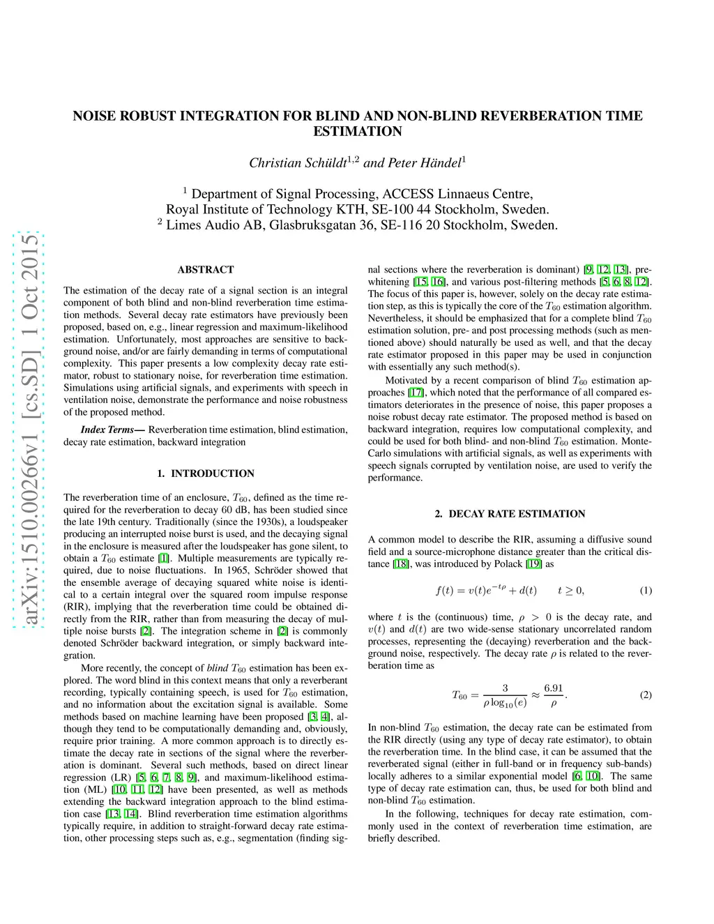 Noise robust integration for blind and non-blind reverberation time