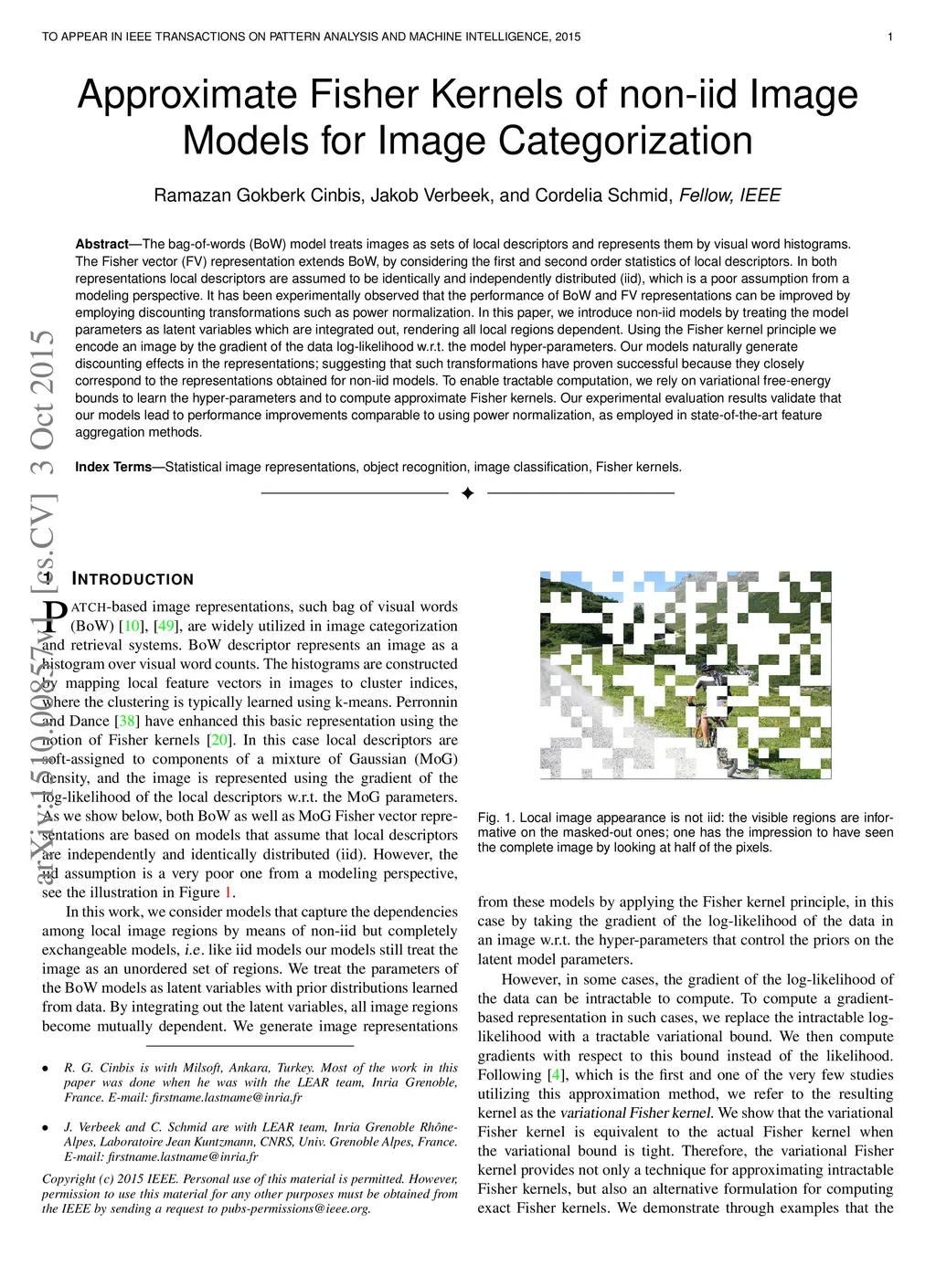 Approximate Fisher Kernels of non-iid Image Models for Image