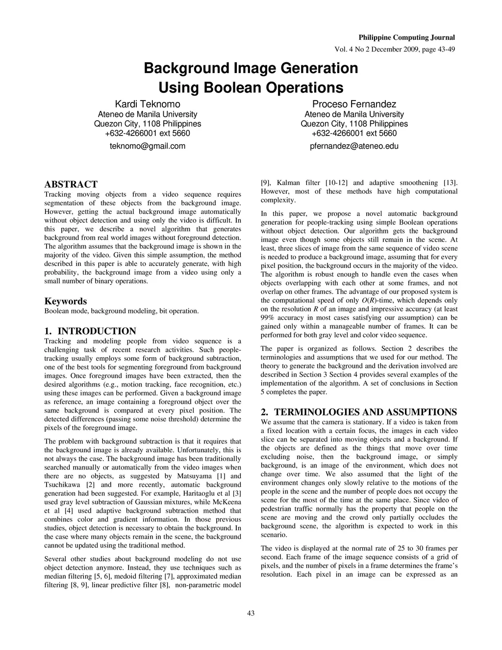 Tracking moving objects from a video sequence requires segmentation of these objects from the background image. However, getting the actual background image automatically without object detection and using only the video is difficult. In this paper, we describe a novel algorithm that generates background from real world images without foreground detection. The algorithm assumes that the background image is shown in the majority of the video. Given this simple assumption, the method described in this paper is able to accurately generate, with high probability, the background image from a video using only a small number of binary operations.