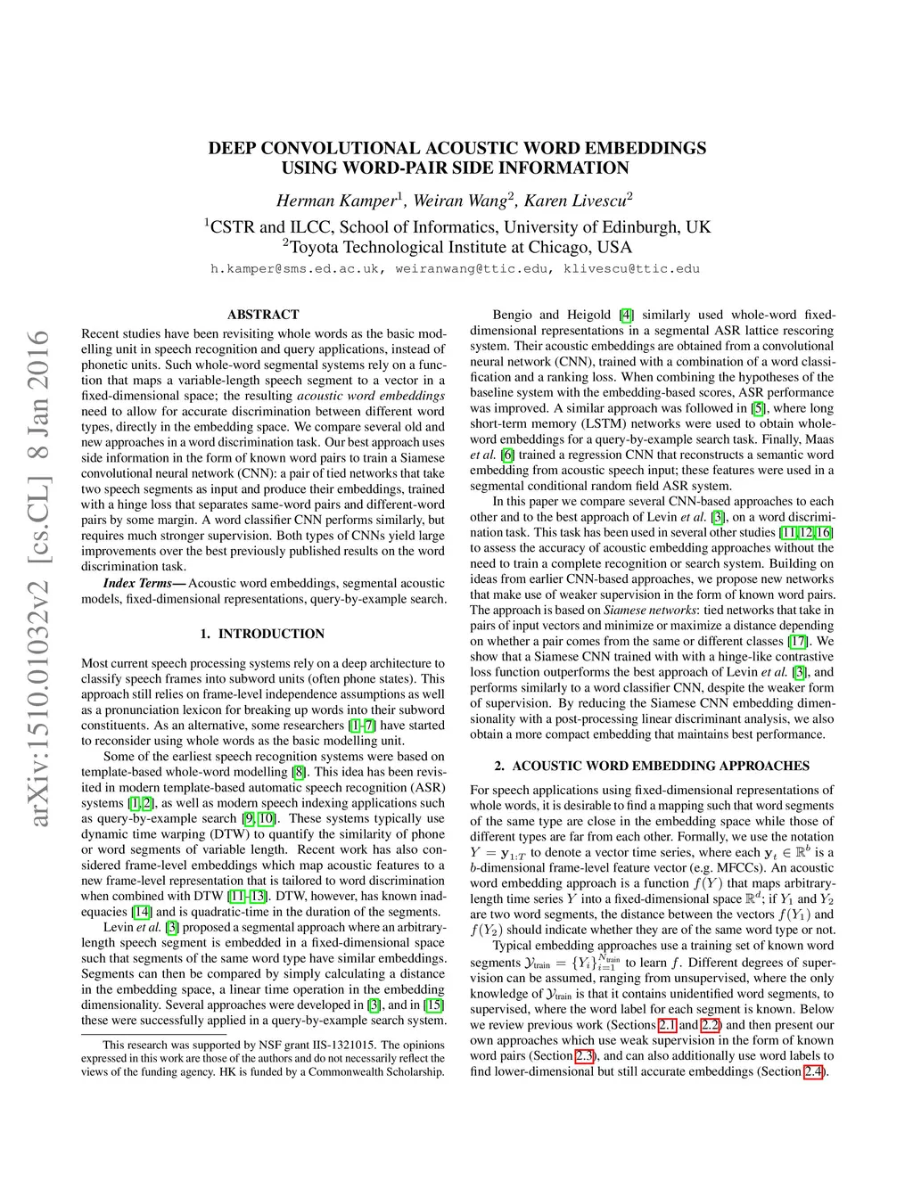 Deep convolutional acoustic word embeddings using word-pair side