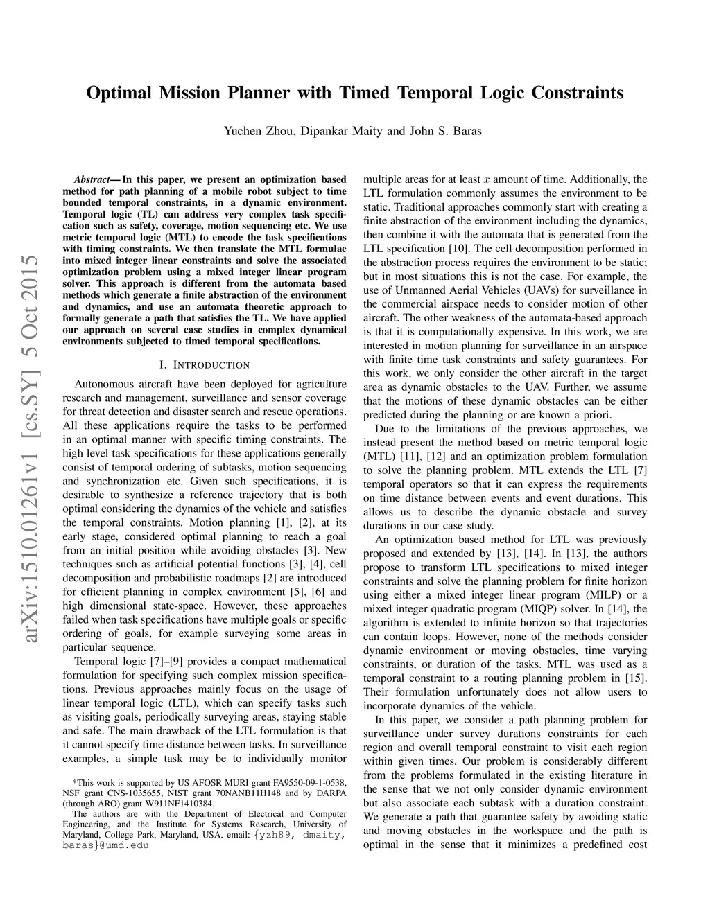 Optimal Mission Planner with Timed Temporal Logic Constraints
