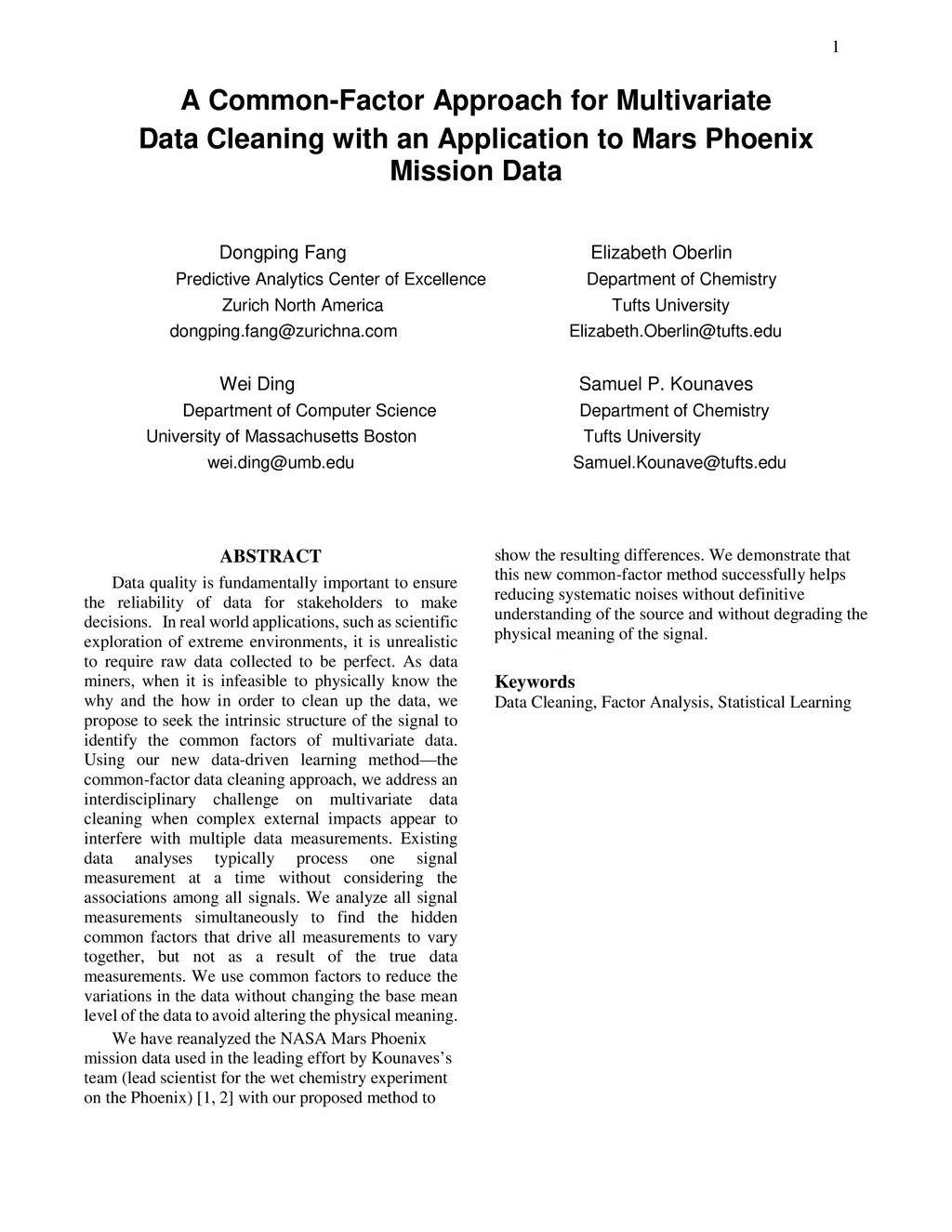 Data quality is fundamentally important to ensure the reliability of data for stakeholders to make decisions. In real world applications, such as scientific exploration of extreme environments, it is unrealistic to require raw data collected to be perfect. As data miners, when it is infeasible to physically know the why and the how in order to clean up the data, we propose to seek the intrinsic structure of the signal to identify the common factors of multivariate data. Using our new data driven learning method, the common-factor data cleaning approach, we address an interdisciplinary challenge on multivariate data cleaning when complex external impacts appear to interfere with multiple data measurements. Existing data analyses typically process one signal measurement at a time without considering the associations among all signals. We analyze all signal measurements simultaneously to find the hidden common factors that drive all measurements to vary together, but not as a result of the true data measurements. We use common factors to reduce the variations in the data without changing the base mean level of the data to avoid altering the physical meaning.