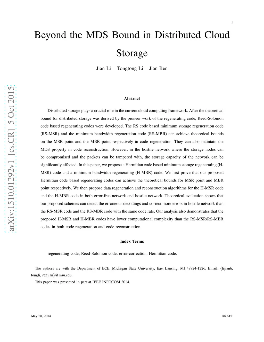 Distributed storage plays a crucial role in the current cloud computing framework. After the theoretical bound for distributed storage was derived by the pioneer work of the regenerating code, Reed-Solomon code based regenerating codes were developed. The RS code based minimum storage regeneration code (RS-MSR) and the minimum bandwidth regeneration code (RS-MBR) can achieve theoretical bounds on the MSR point and the MBR point respectively in code regeneration. They can also maintain the MDS property in code reconstruction. However, in the hostile network where the storage nodes can be compromised and the packets can be tampered with, the storage capacity of the network can be significantly affected. In this paper, we propose a Hermitian code based minimum storage regenerating (H-MSR) code and a minimum bandwidth regenerating (H-MBR) code. We first prove that our proposed Hermitian code based regenerating codes can achieve the theoretical bounds for MSR point and MBR point respectively. We then propose data regeneration and reconstruction algorithms for the H-MSR code and the H-MBR code in both error-free network and hostile network. Theoretical evaluation shows that our proposed schemes can detect the erroneous decodings and correct more errors in hostile network than the RS-MSR code and the RS-MBR code with the same code rate. Our analysis also demonstrates that the proposed H-MSR and H-MBR codes have lower computational complexity than the RS-MSR/RS-MBR codes in both code regeneration and code reconstruction.