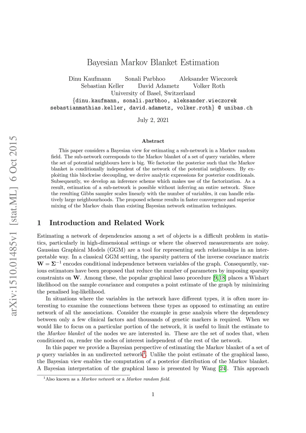 This paper considers a Bayesian view for estimating a sub-network in a Markov random field. The sub-network corresponds to the Markov blanket of a set of query variables, where the set of potential neighbours here is big. We factorize the posterior such that the Markov blanket is conditionally independent of the network of the potential neighbours. By exploiting this blockwise decoupling, we derive analytic expressions for posterior conditionals. Subsequently, we develop an inference scheme which makes use of the factorization. As a result, estimation of a sub-network is possible without inferring an entire network. Since the resulting Gibbs sampler scales linearly with the number of variables, it can handle relatively large neighbourhoods. The proposed scheme results in faster convergence and superior mixing of the Markov chain than existing Bayesian network estimation techniques.