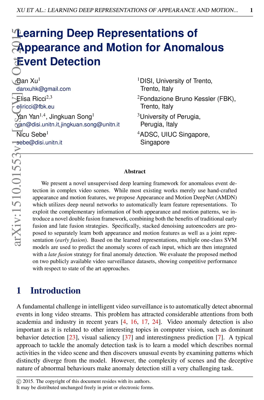 Learning Deep Representations of Appearance and Motion for Anomalous
