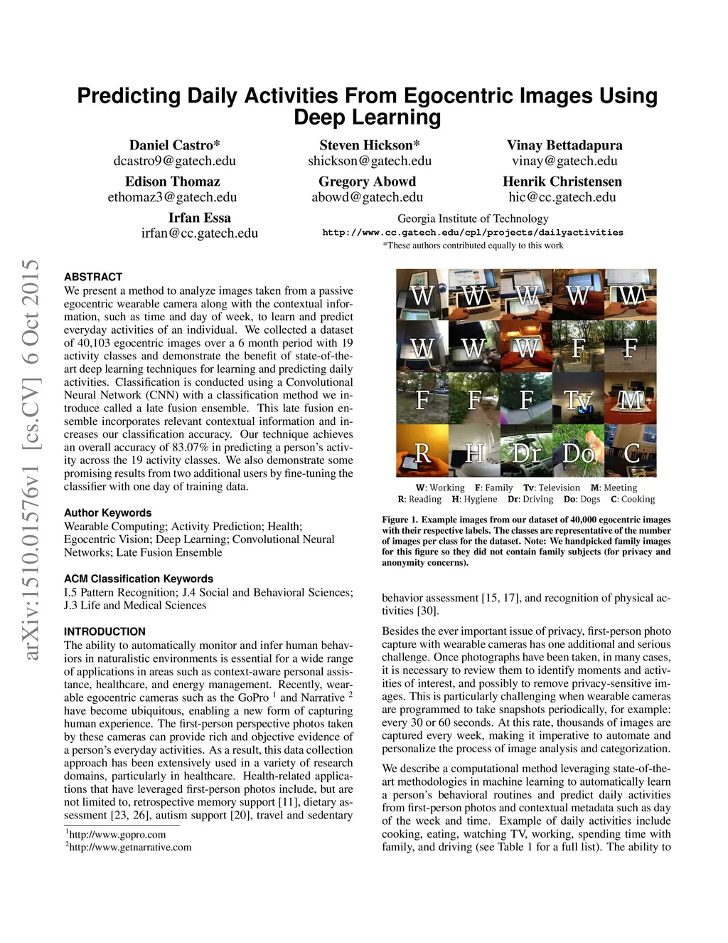 Predicting Daily Activities From Egocentric Images Using Deep Learning