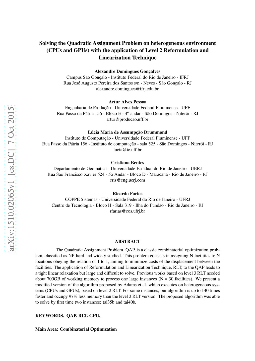 Solving the Quadratic Assignment Problem on heterogeneous environment