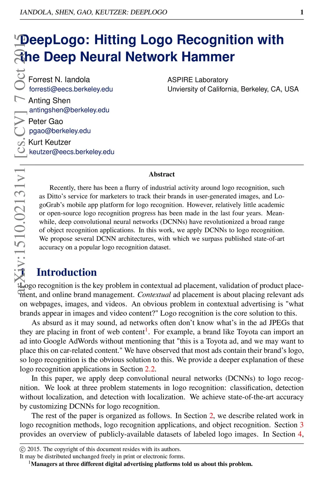 DeepLogo: Hitting Logo Recognition with the Deep Neural Network Hammer