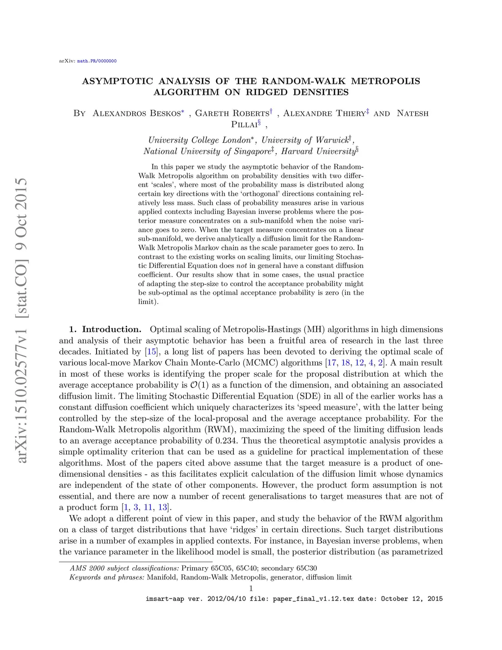 Asymptotic Analysis of the Random-Walk Metropolis Algorithm on Ridged