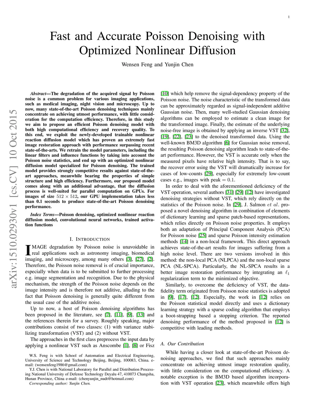 Fast and Accurate Poisson Denoising with Optimized Nonlinear Diffusion