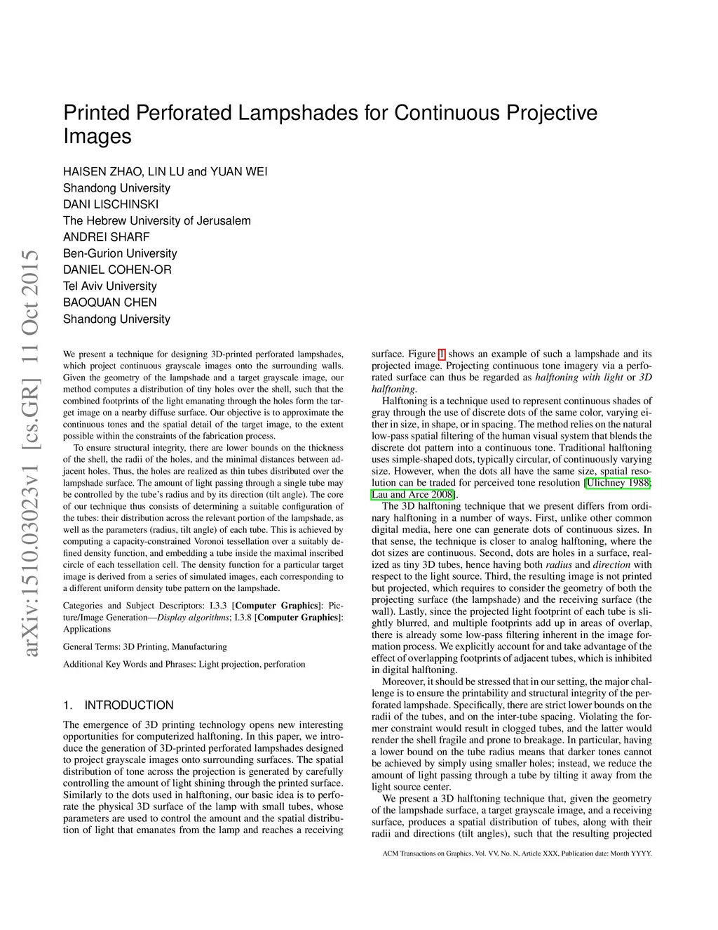 Printed Perforated Lampshades for Continuous Projective Images